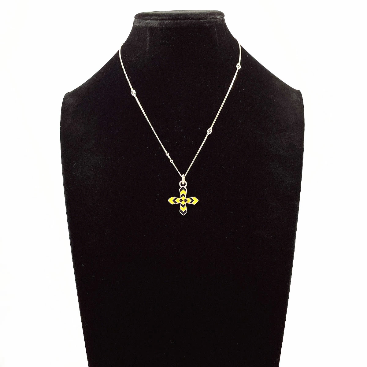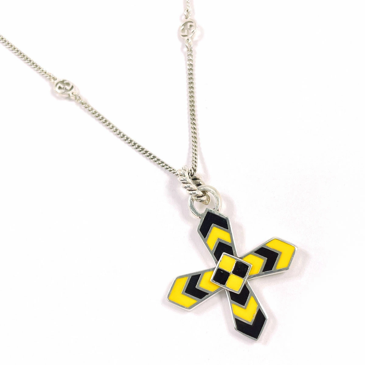| 商品説明 | シャープなラインで構成されたクロスデザインに、ブラックとイエローのコントラストカラーを組み合わせた一本。モダンでストリート感のある配色が、首元に圧倒的な存在感を演出します。 |