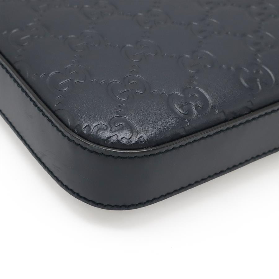 【商品説明】[サイズ]W25.5cm H23cm D3cm ショルダー最長約138cm(調節可、金具含む)[材質]グッチシマレザー[カラー]ブラック[仕様]外側ファスナーポケット1、内側ファスナーポケット1、小ポケット2[付属品]保存袋[重さ]約500g