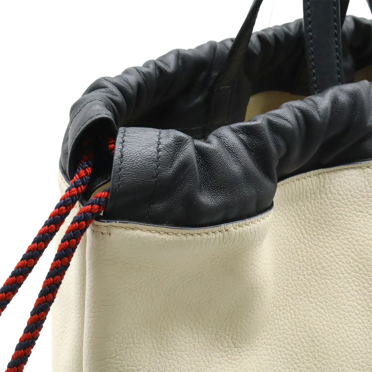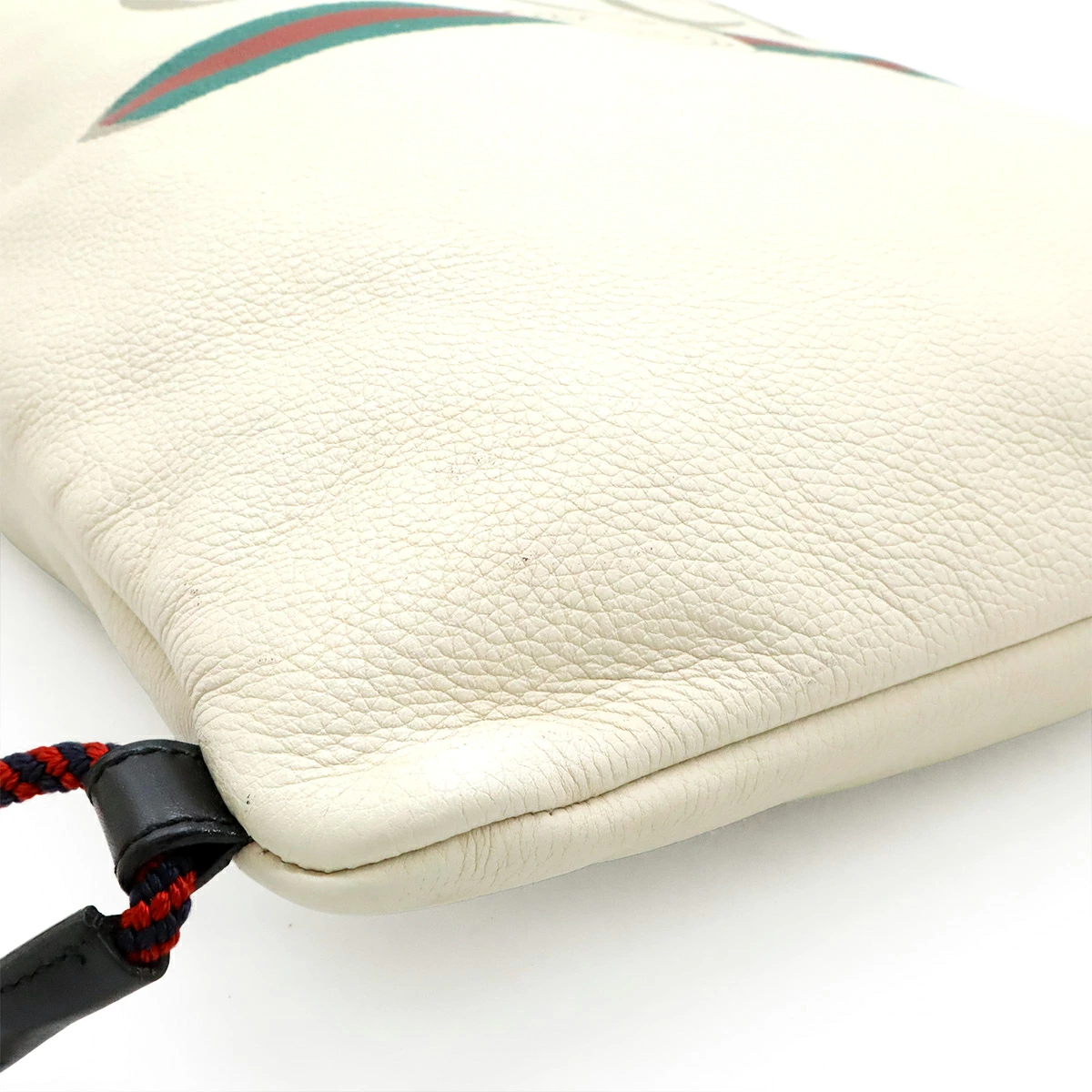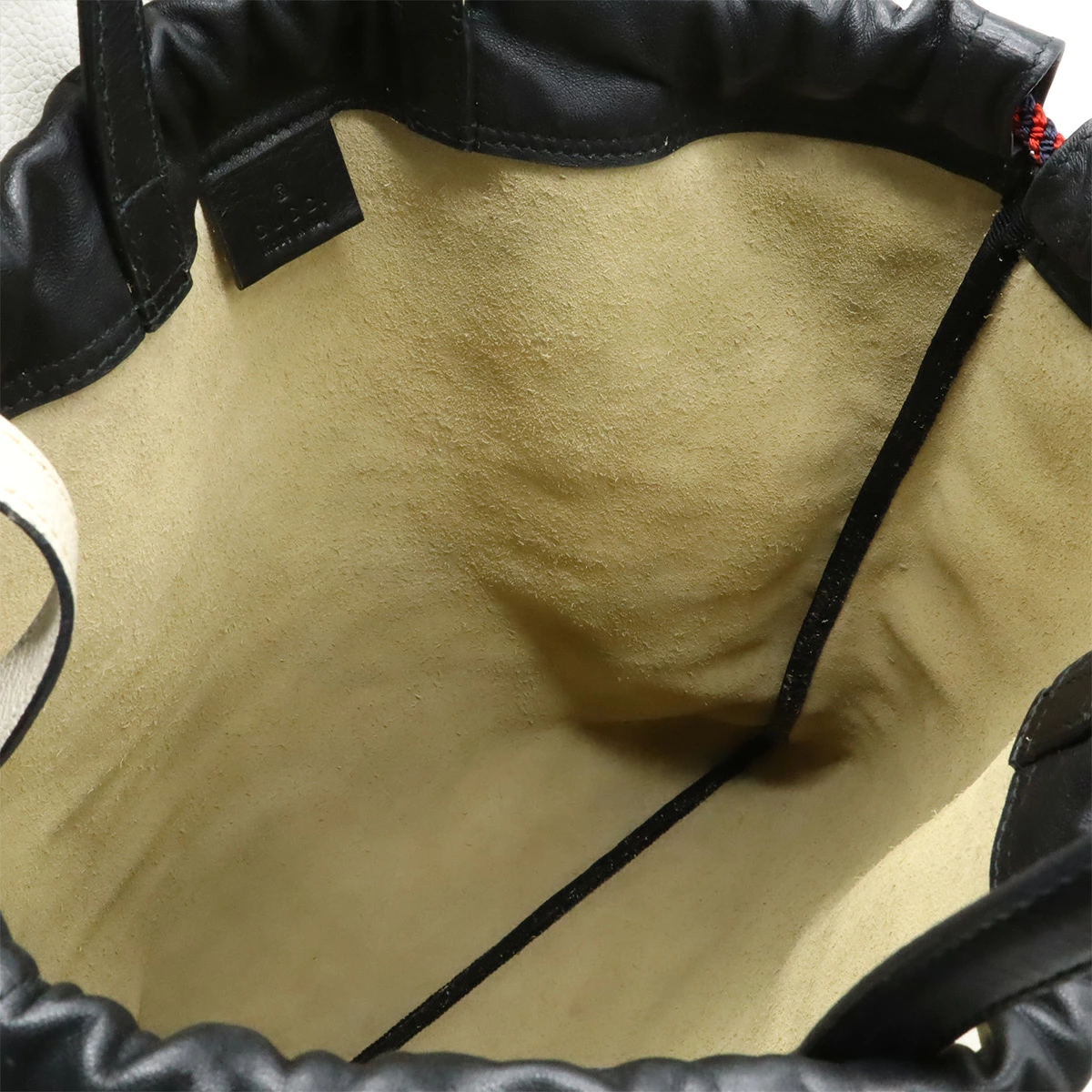 Pre-owned GUCCI Gucci print drawstring backpack/two-way tote bag in ivory and white leather with pouch (516639)