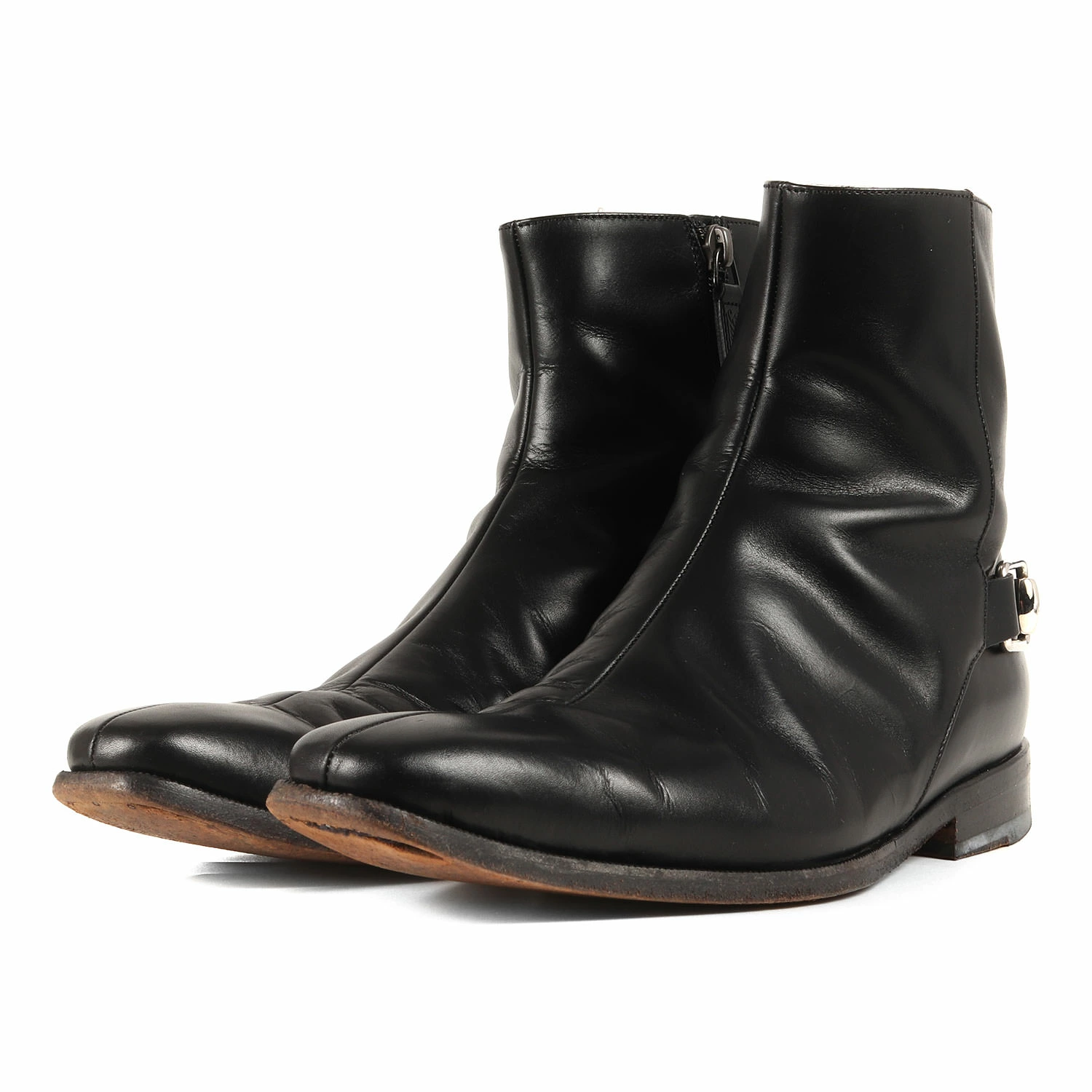 GUCCI Backbit Strap Side Zip Boots (204398) Size: 38EJ (24.0cm) Black Made in Italy Men's Designer Shoes [Pre-owned] [K4614]