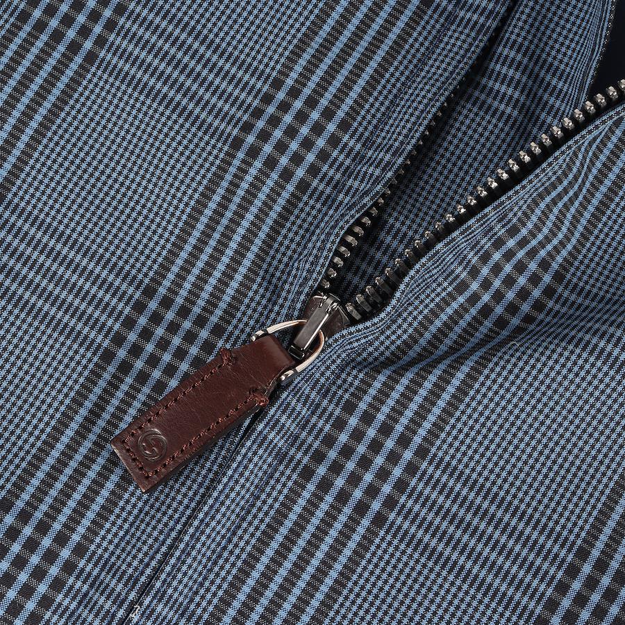 | 商品説明 | ポリエステル/コットン混紡生地を使用し、フルジップで仕上げたスイングトップジャケットです。全体にチェック柄をデザインしています。スタンドカラー、レザーサイドアジャスターがポイントです。 |