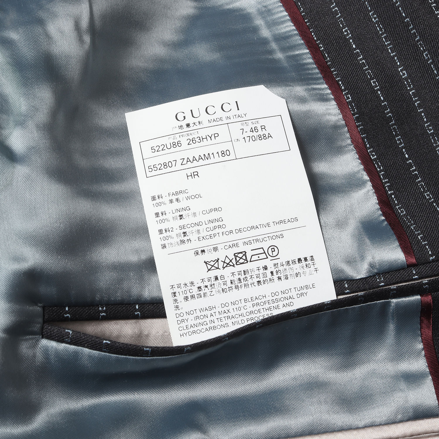 - 表地 ウール100% / 裏地 キュプラ100%
