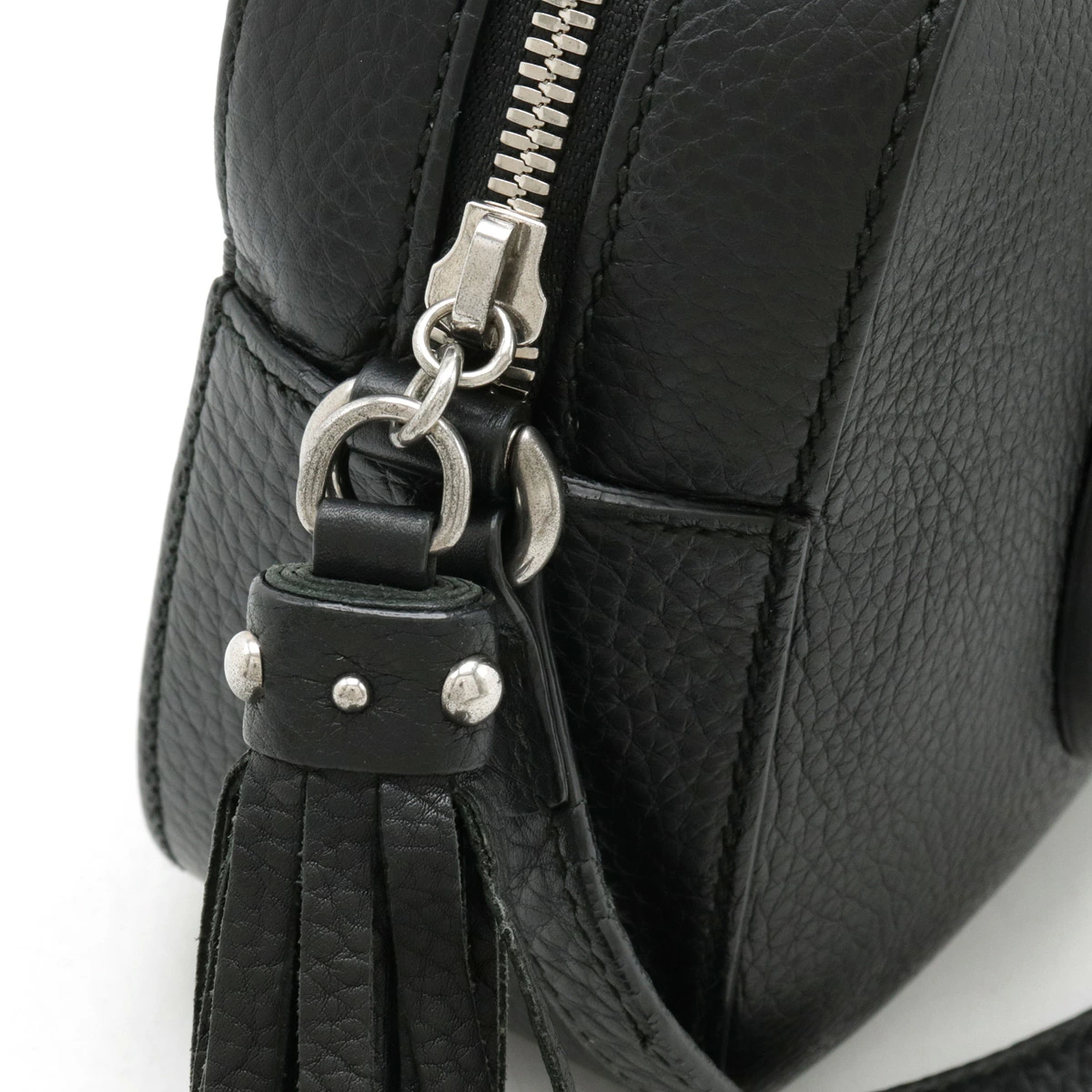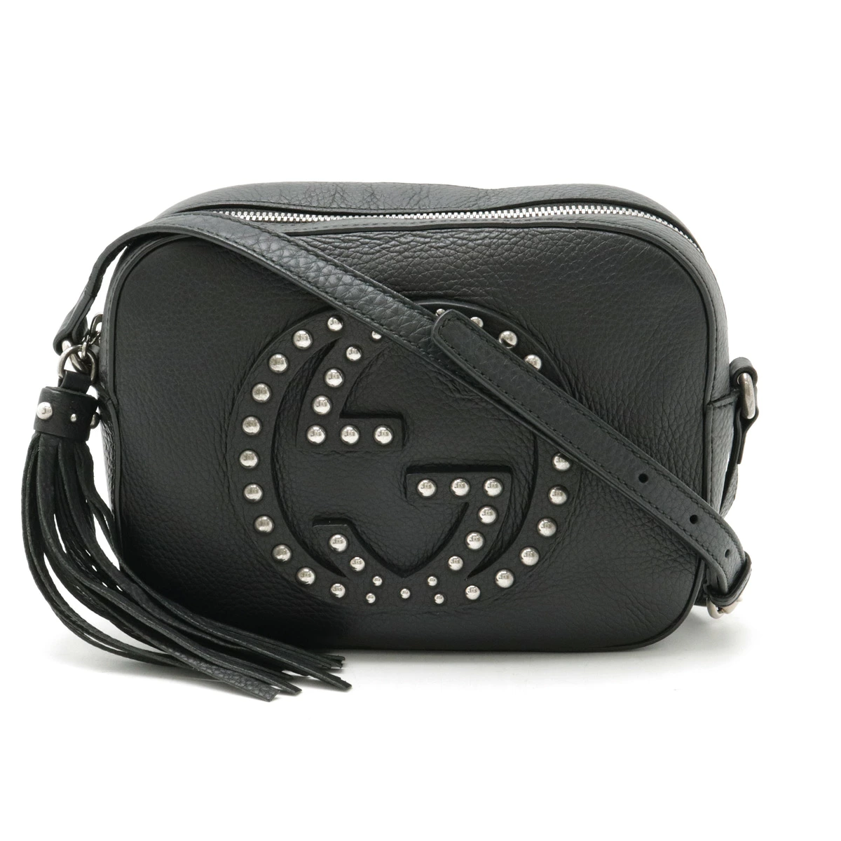 正面スタッズが施されたロゴとフリンジが目を惹くクールなデザイン。