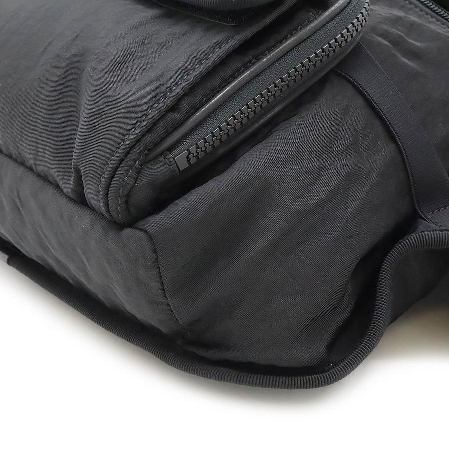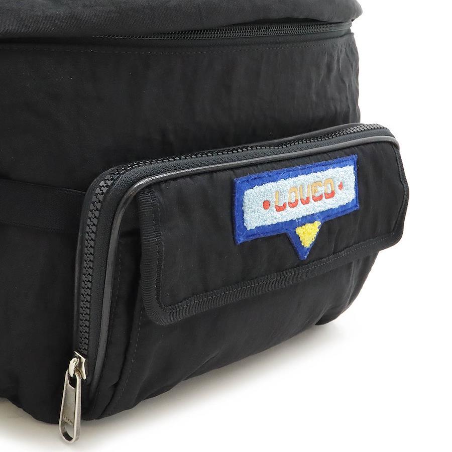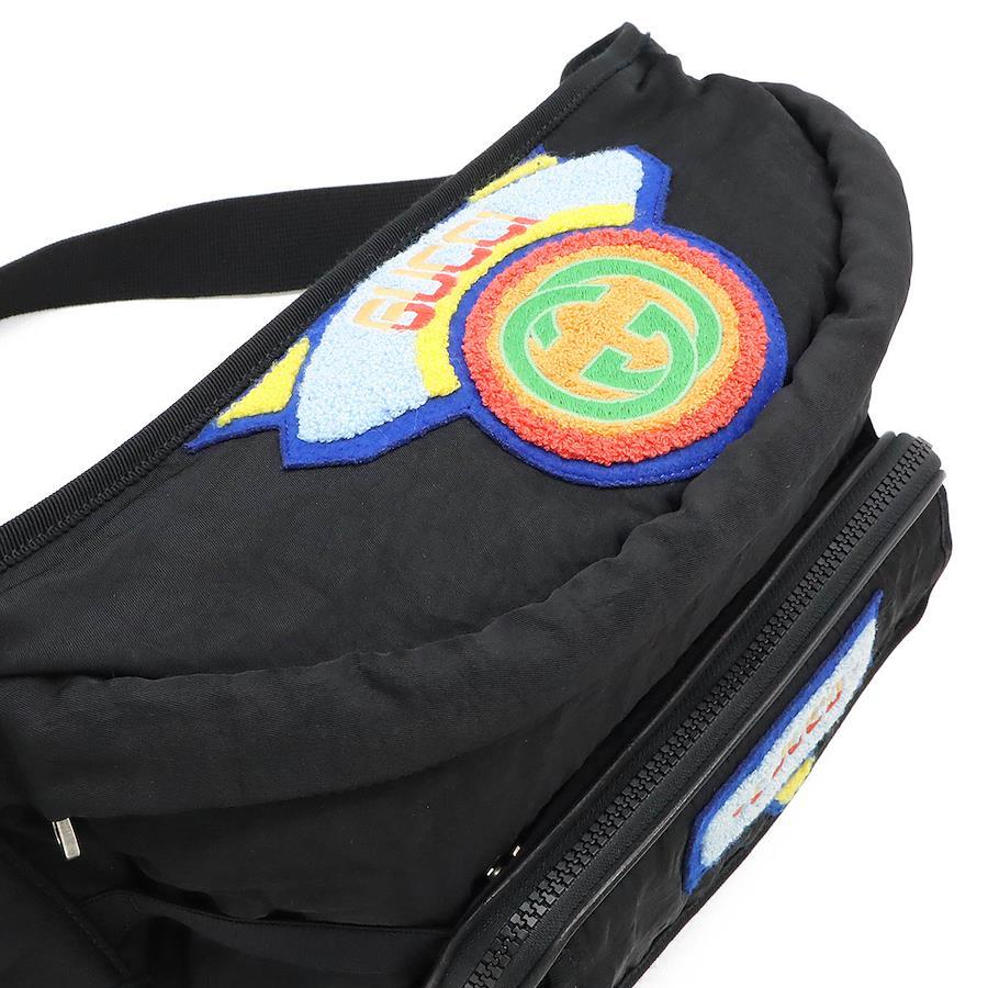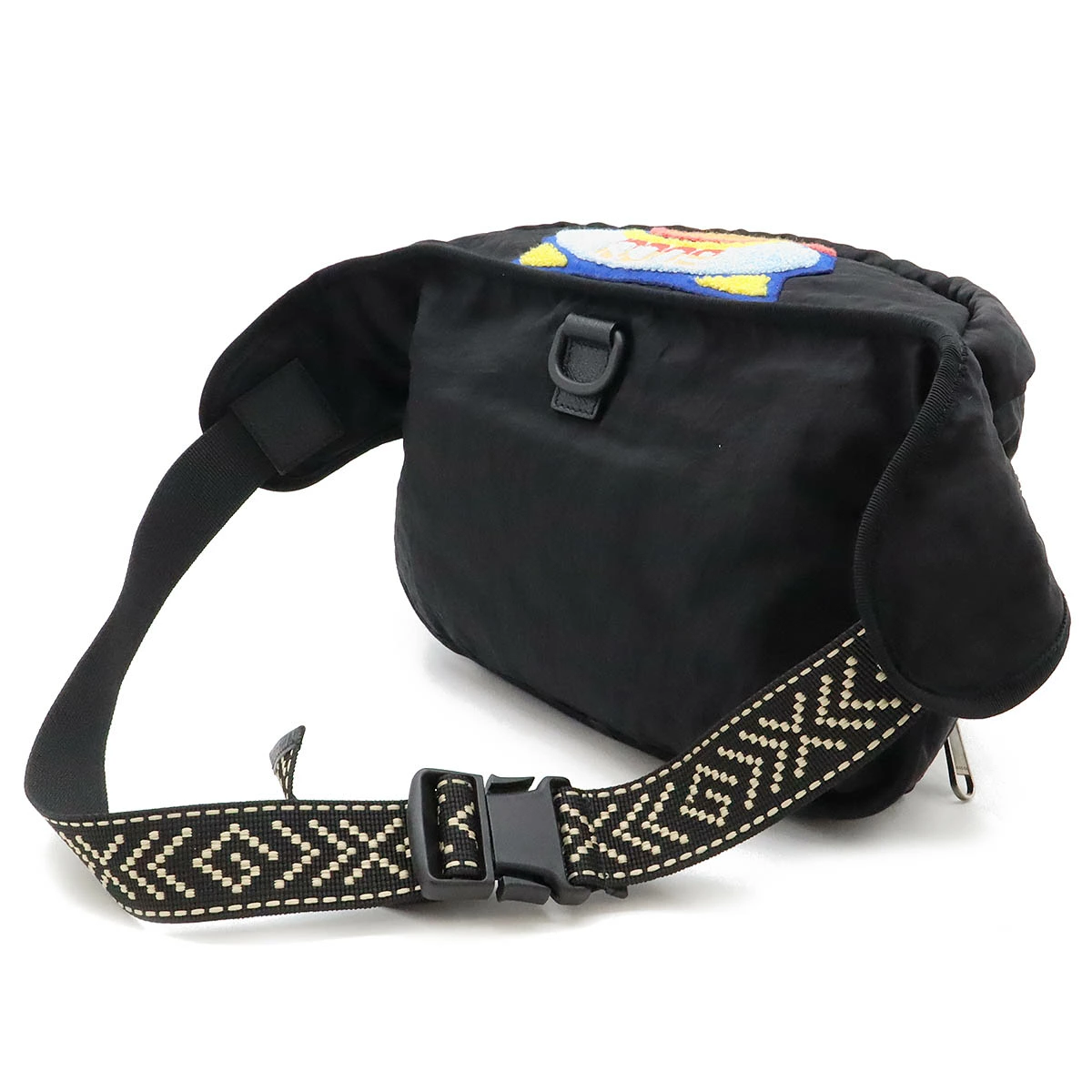 ブラックのナイロン地に、レインボーカラーのヴィンテージ風テリークロスパッチが付いたベルトバッグ。