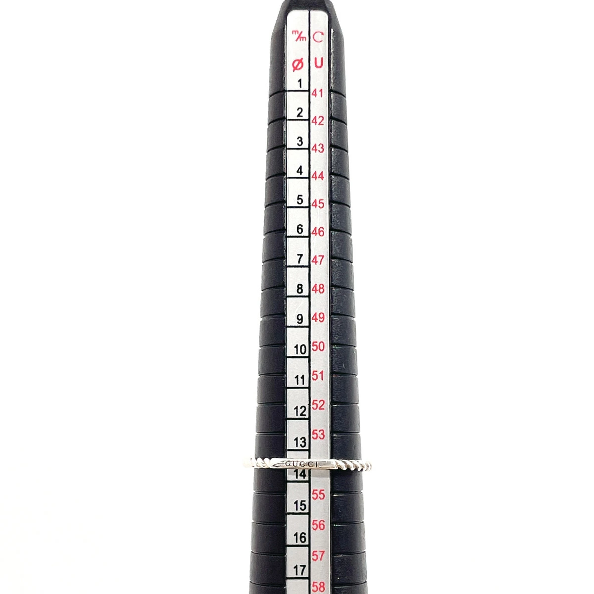 | サイズ | 13.5号 リング幅:約1.6mm 6.75(US Size) 表記サイズ:15(実寸は表記サイズより約1.5号ほど小さくなります。) ※リング幅は背面部分を計測しております。 |