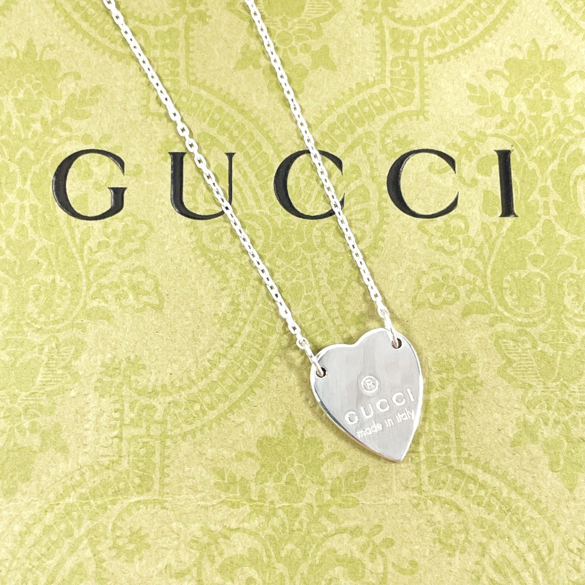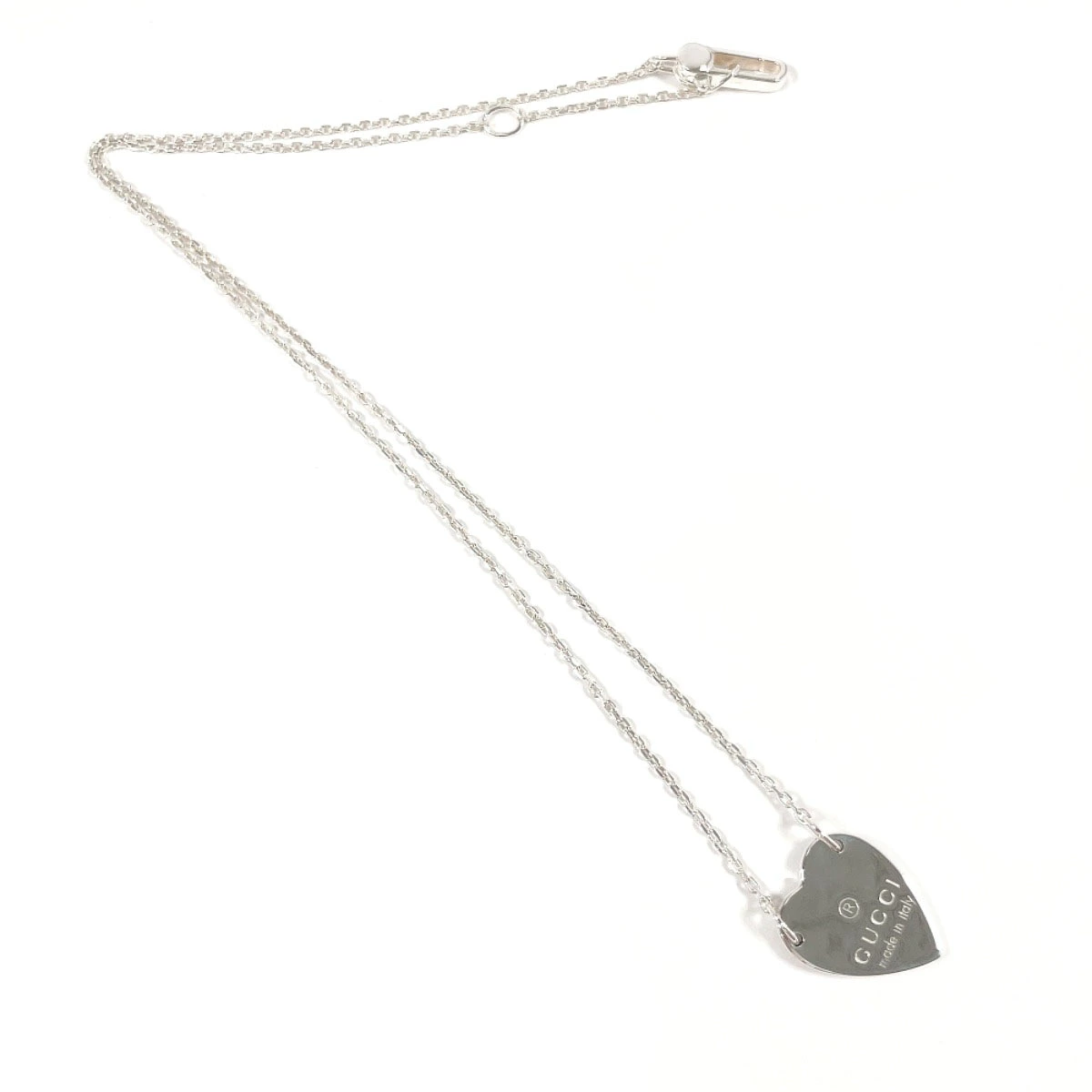| 商品説明 | グッチのロゴが刻印されたアイコニックな「トレードマーク ハート ネックレス」。シルバーの上品な輝きが胸元を華やかに彩り、カジュアルにもフォーマルにもマッチします。 |
