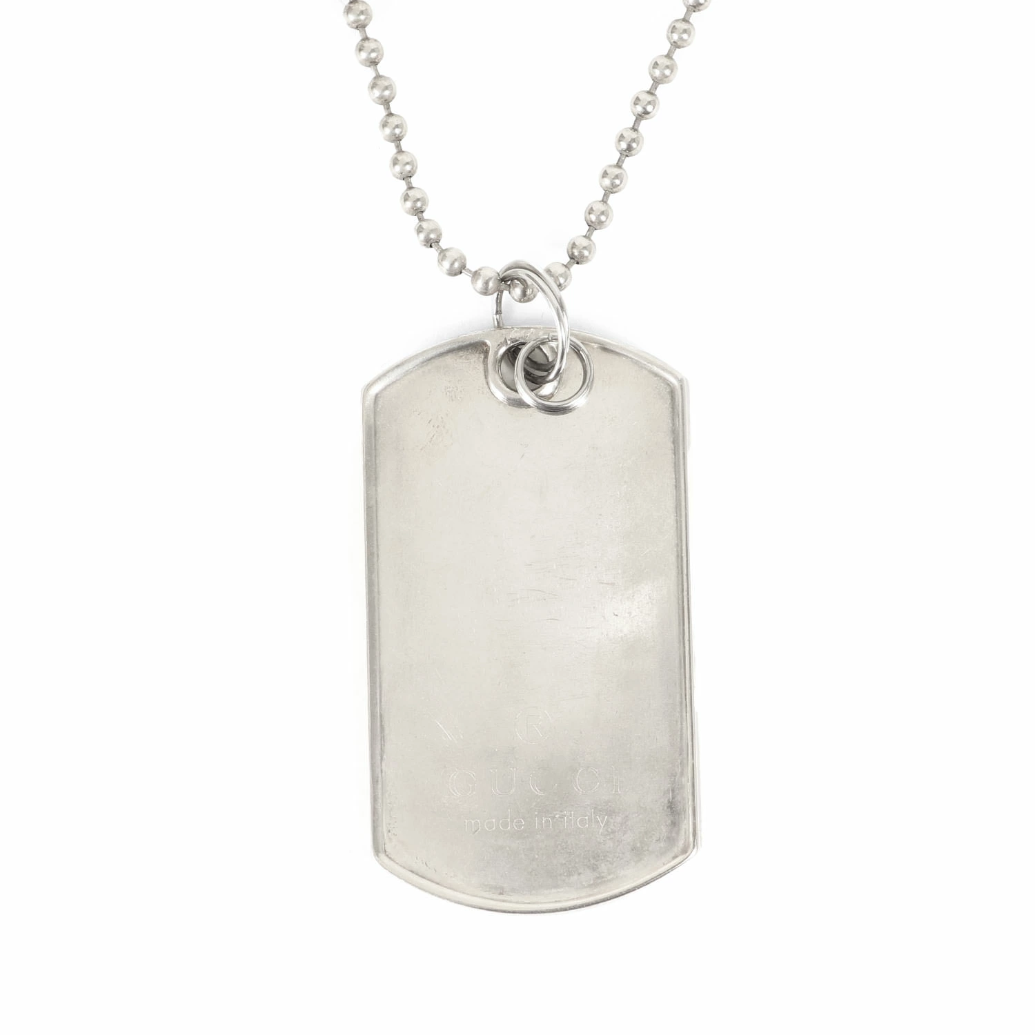 | 商品説明 | ペンダントトップにブランドロゴ入りドッグタグが配されたボールチェーンネックレスです。 |