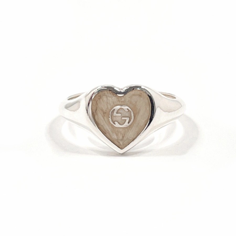 GUCCI Heart Interlocking G 645544 J8410 1184 Ring, Sterling Silver 925/Enamel, Size 13.5cm, Silver [Used] Women's