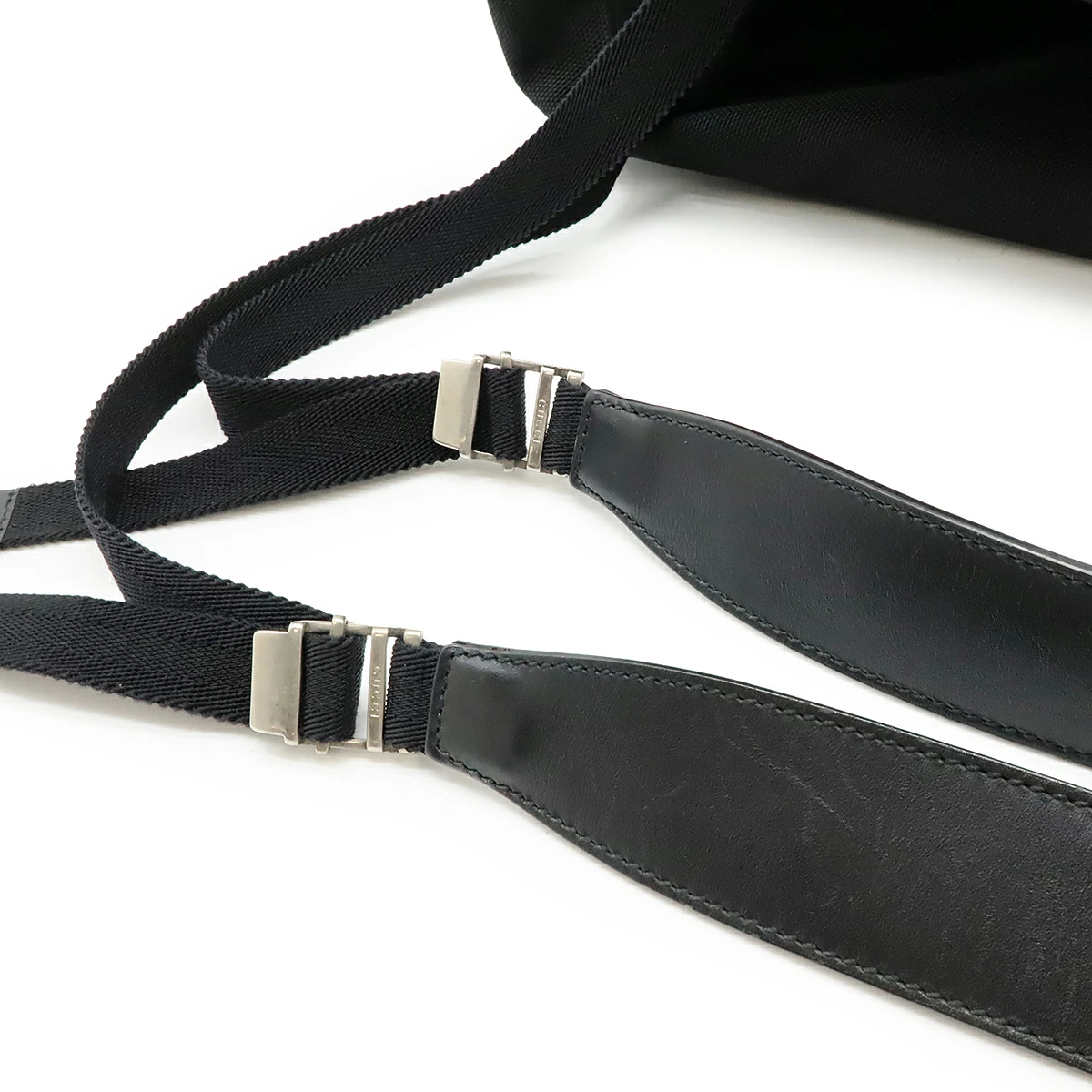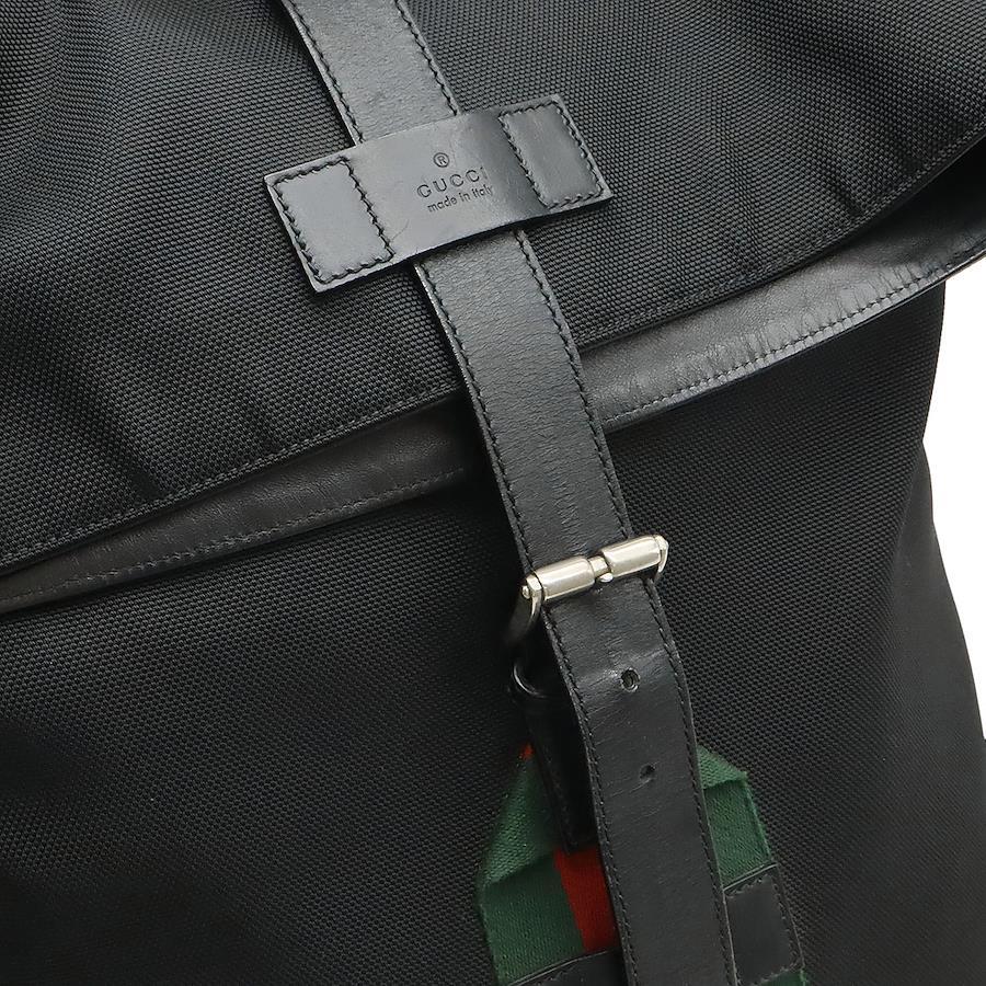 丈夫で軽いキャンバス素材に緑と赤のウェブディティールがお洒落で高級感溢れるバックパックでございます。