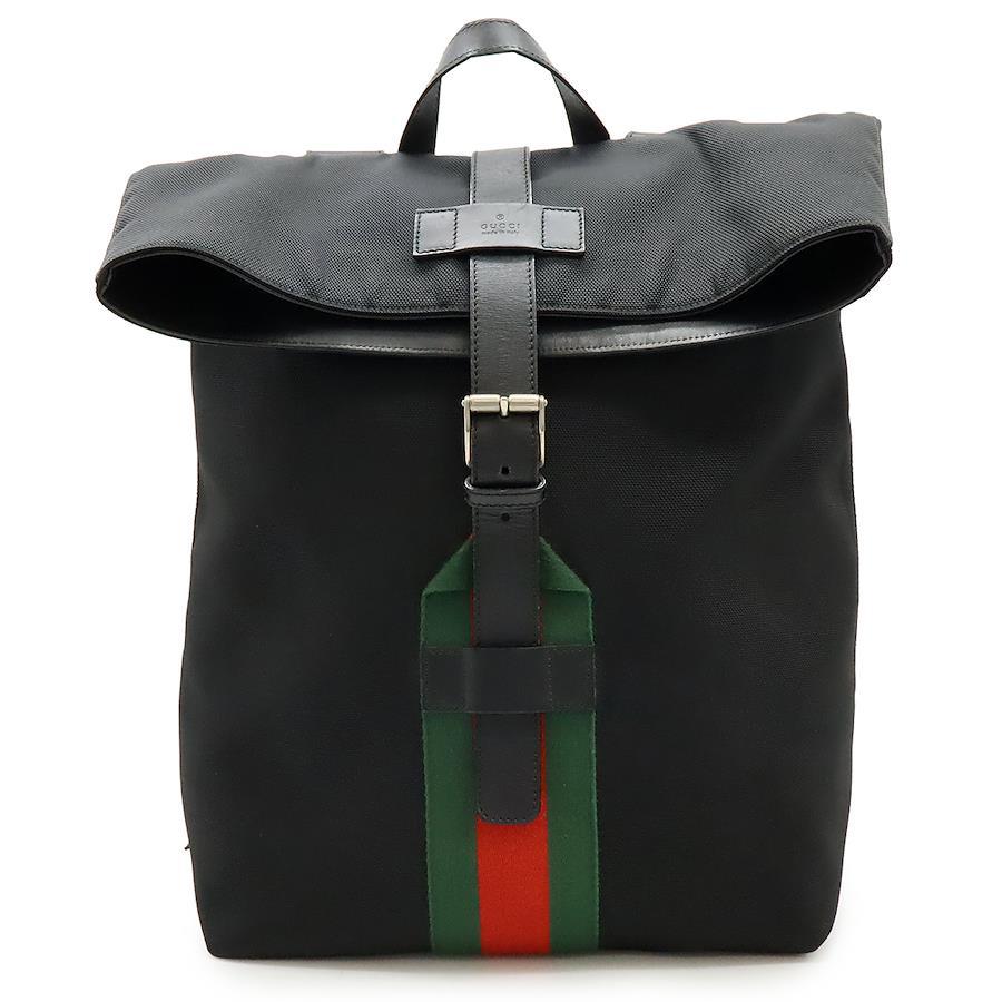 丈夫で軽いキャンバス素材に緑と赤のウェブディティールがお洒落で高級感溢れるバックパックでございます。