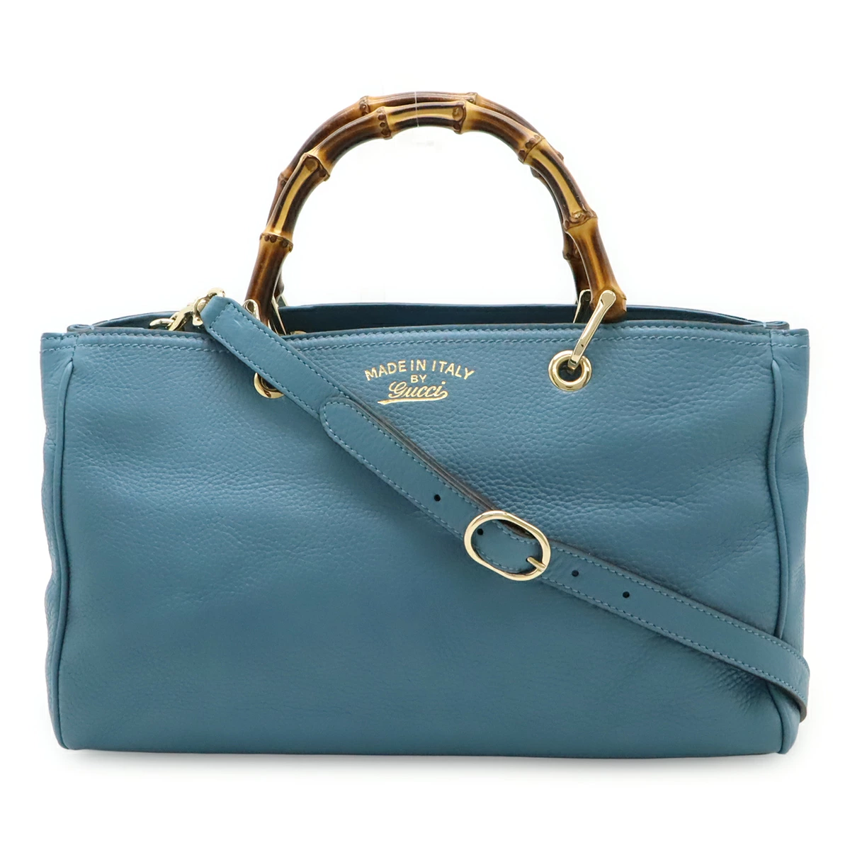上質なレザーにバンブーハンドルがアクセントになったグッチらしいシックでハイセンスなミディアムトート。