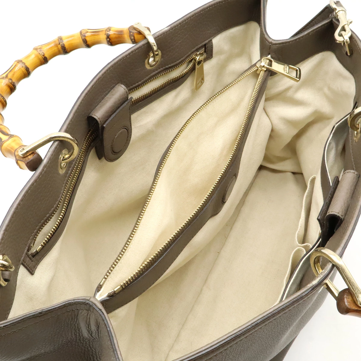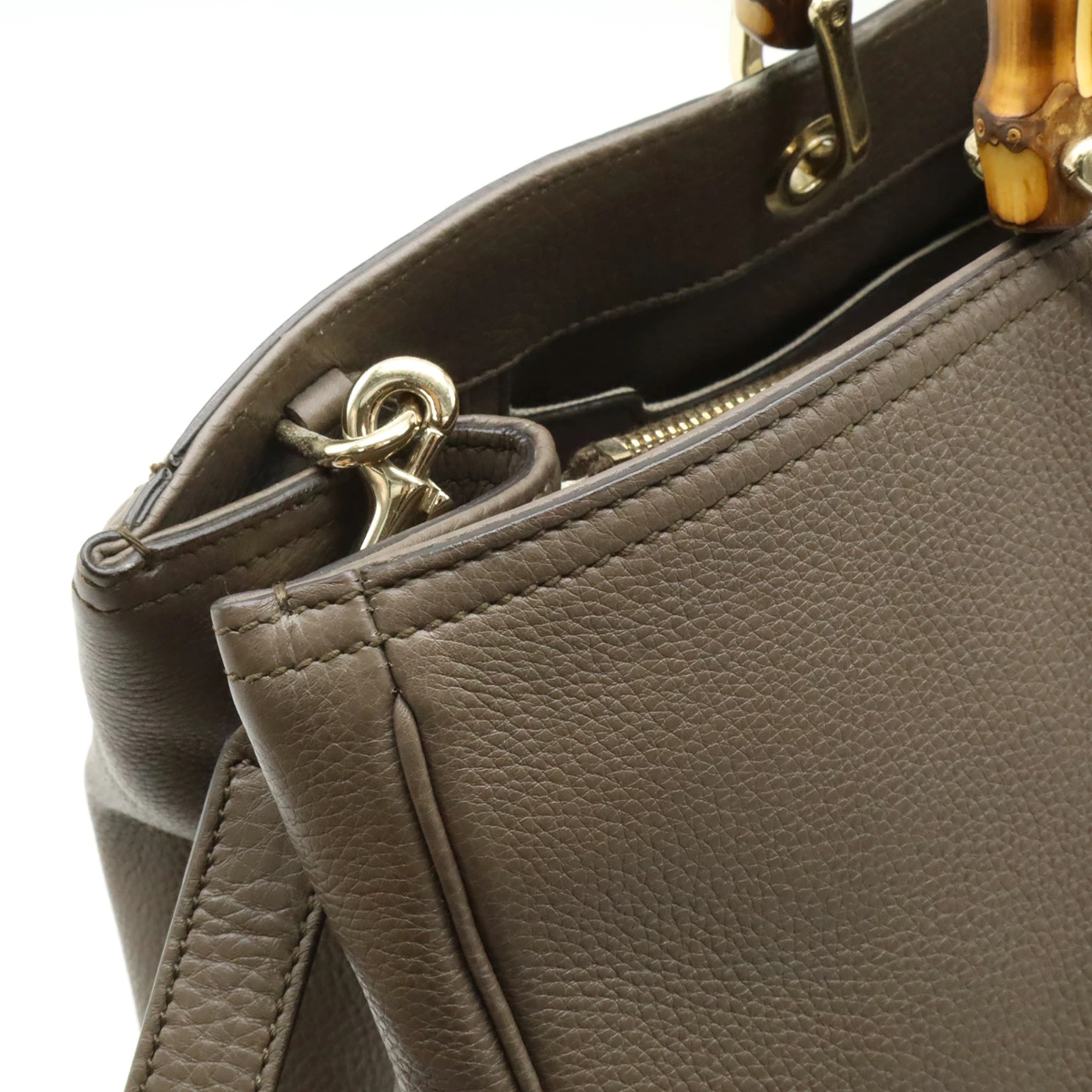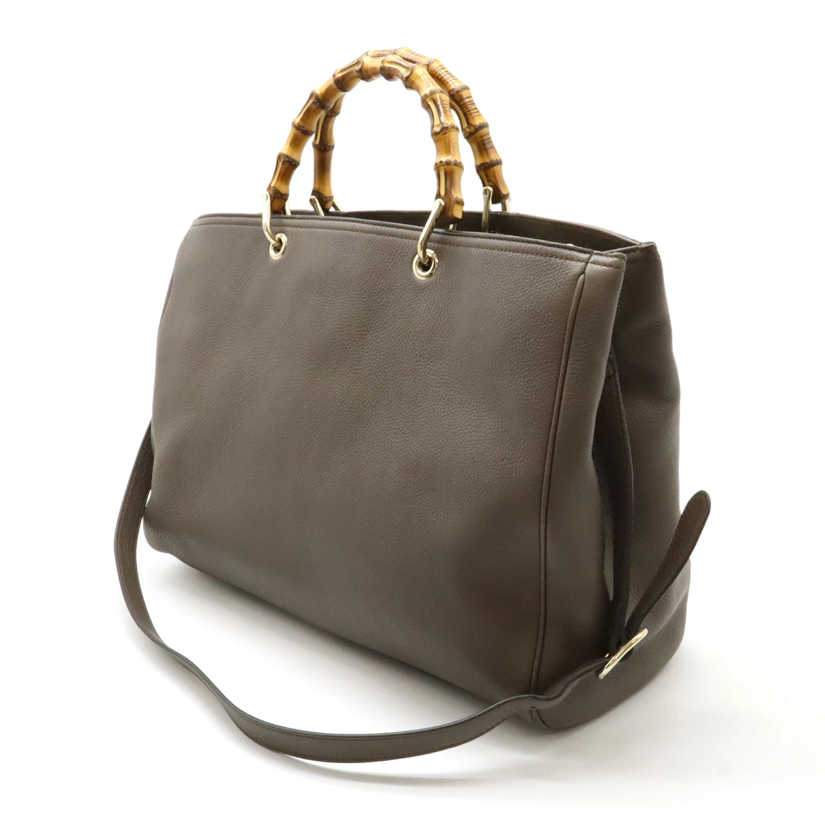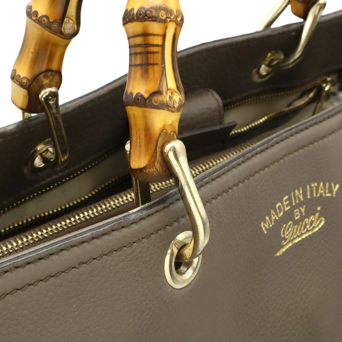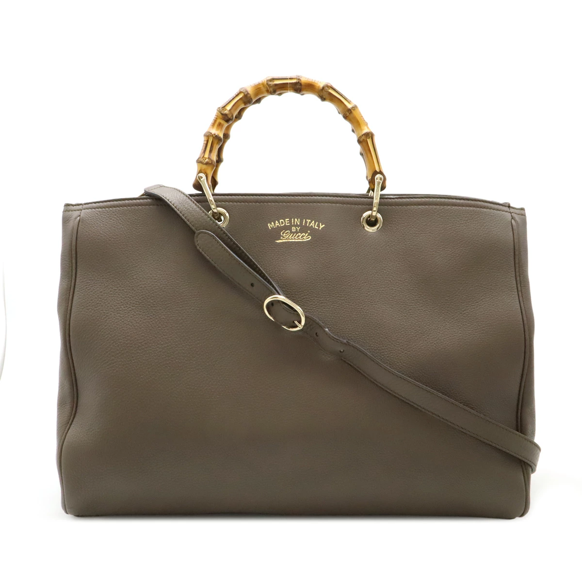 上質なレザーにバンブーハンドルがアクセントになったグッチらしいシックでハイセンスなトートバッグ。