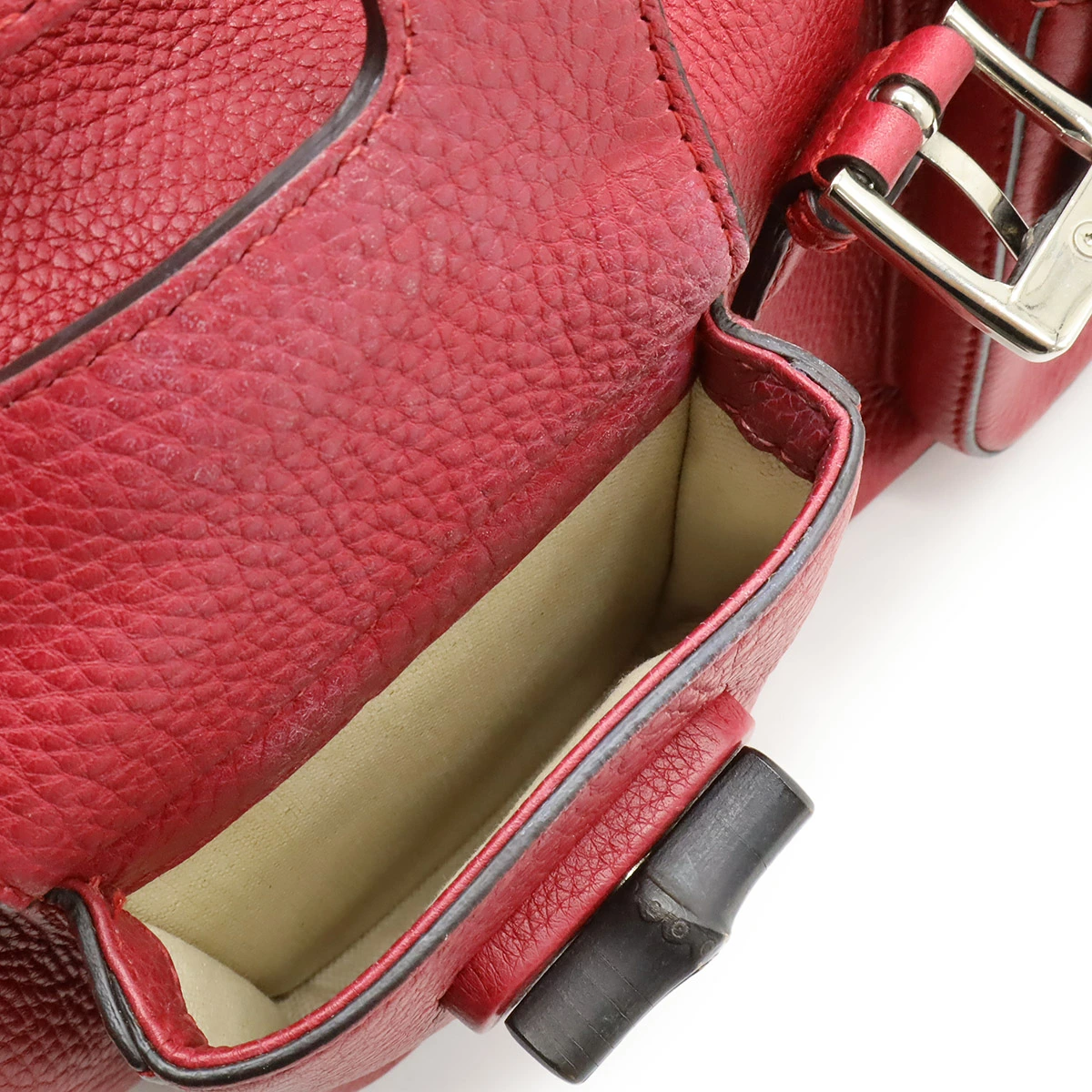 高級感のあるレザーの質感とバンブーのデザインがオシャレで、両手が空き大変便利なリュックタイプのバッグでございます。