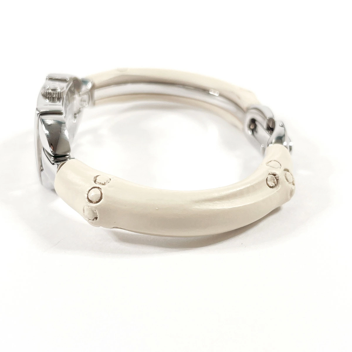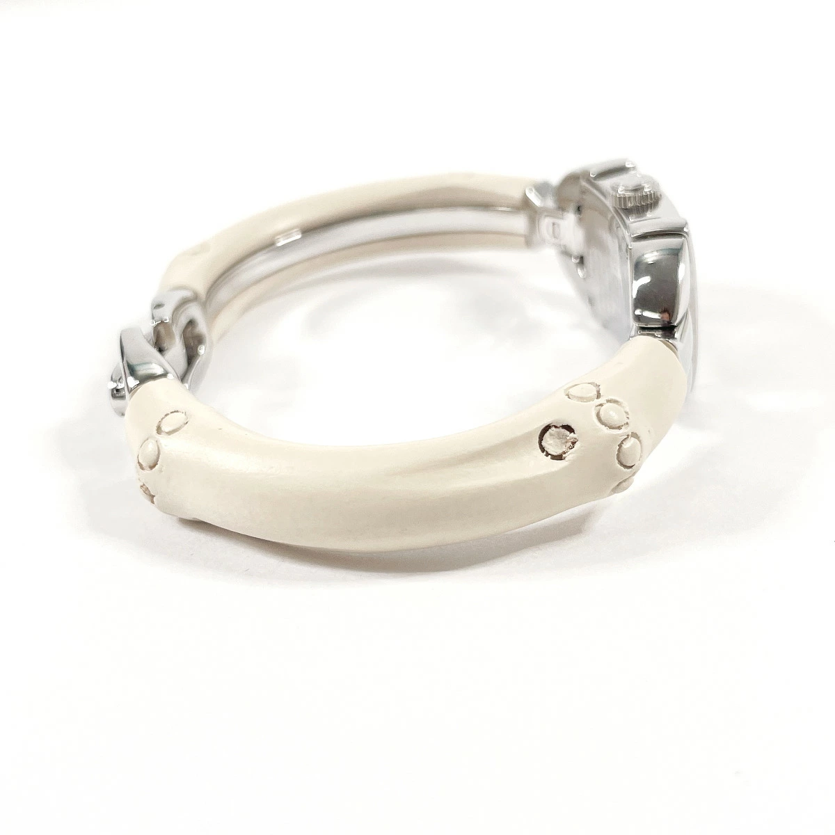 | 商品説明 | グッチの代表的モチーフ「バンブー」を取り入れた腕時計。バングル型の華奢なデザインが、アクセサリー感覚でお楽しみいただけます。 |