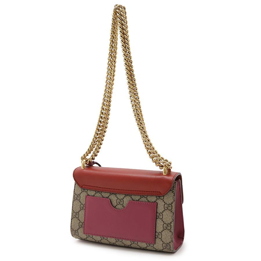 【商品説明】[サイズ]W20cm H13cm D7cm ショルダー全長約106cm[材質]GGスプリーム キャンバス(PVCコーティング)/レザー[カラー]ベージュ/レッド/ピンク[仕様]外側背面ポケット1、内側ポケット1[付属品]クロシェット(結び目毛羽立ち) 鍵2[重さ]約690g