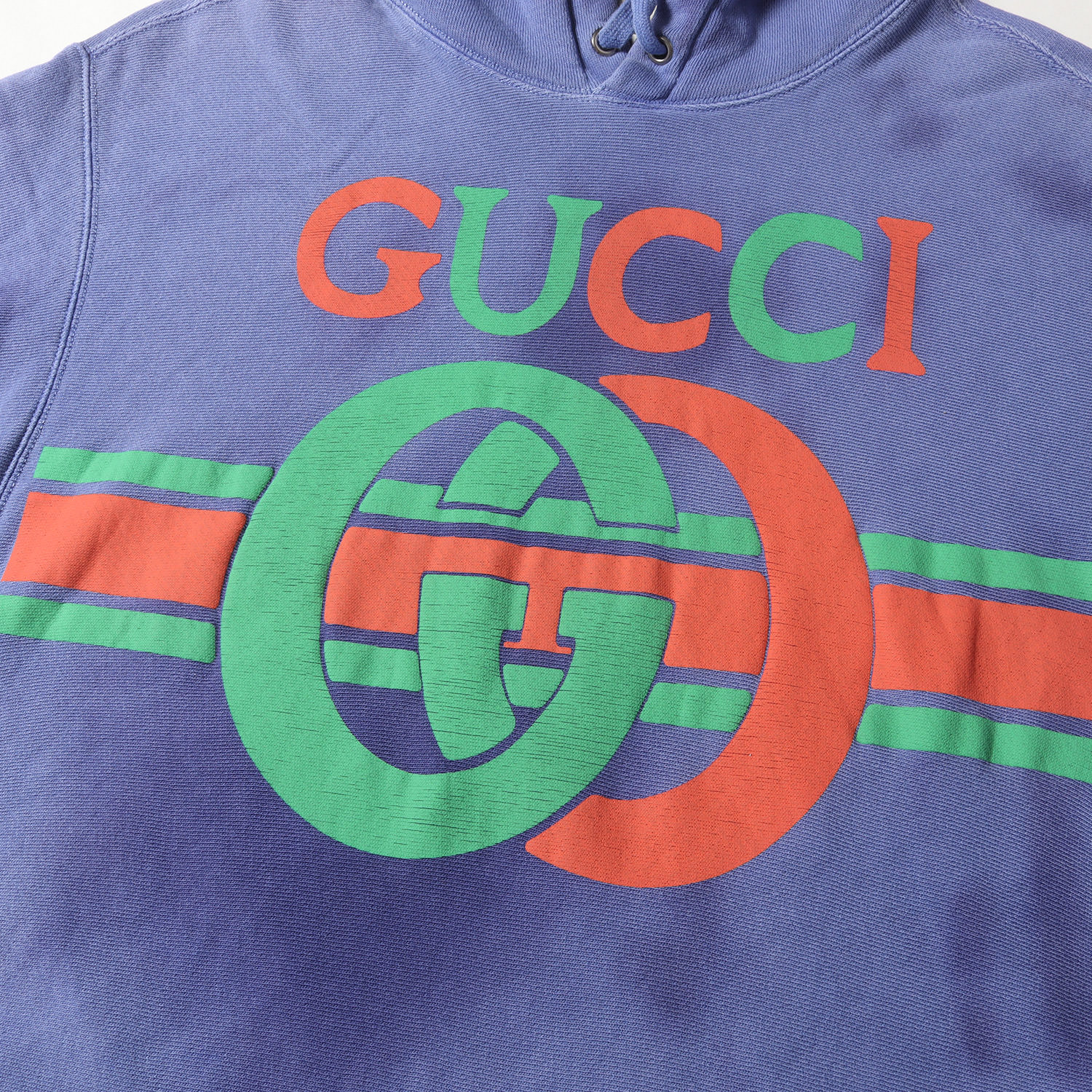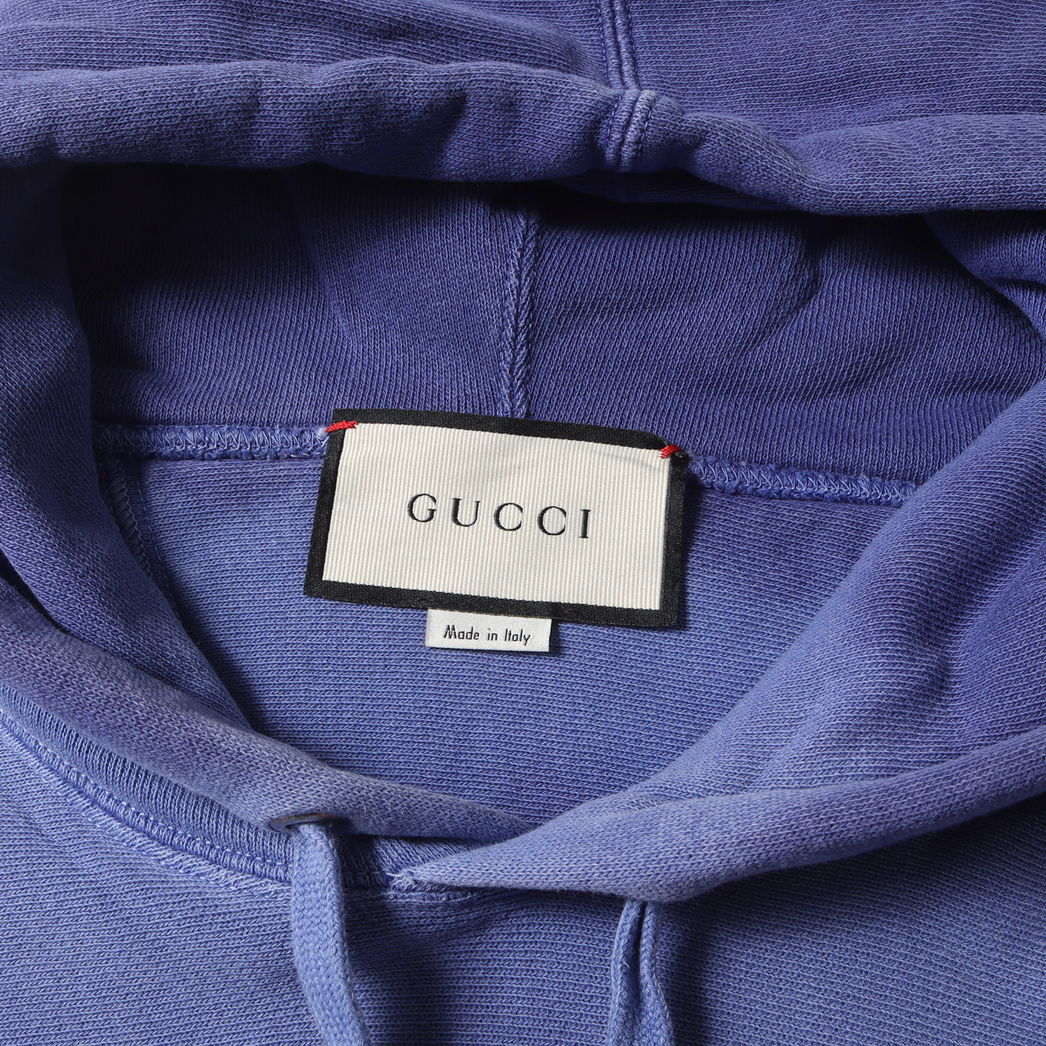 GUCCI Blue Hoodie, Size XS | Vintage-Finished Interlocking G Sweatshirt Hoodie (569828 XJA46) | Fleece | Tops, Hoodie, Pullover | Made in Italy [Men's] [Pre-owned] [Excellent Condition] [K4614]