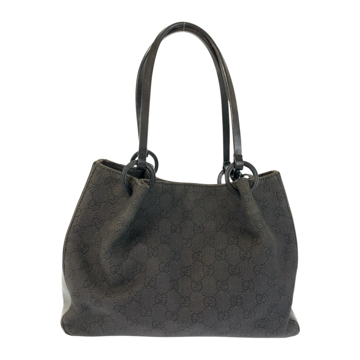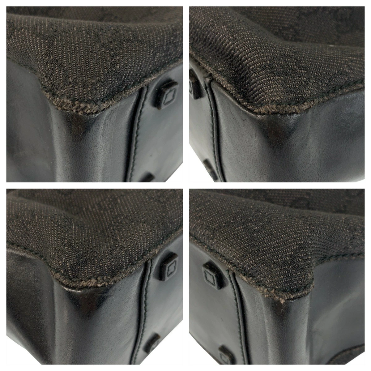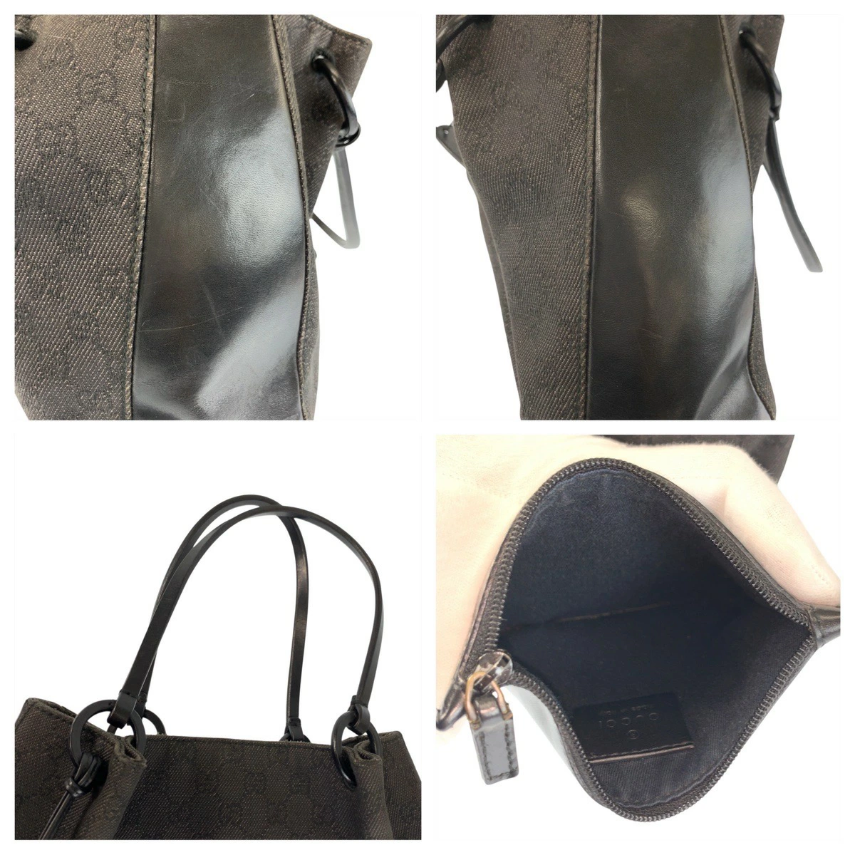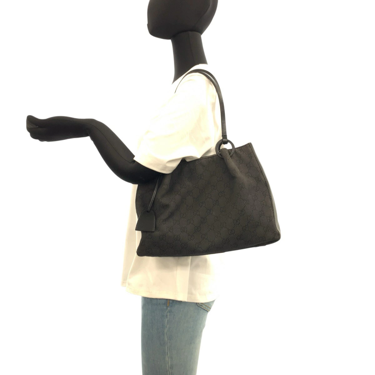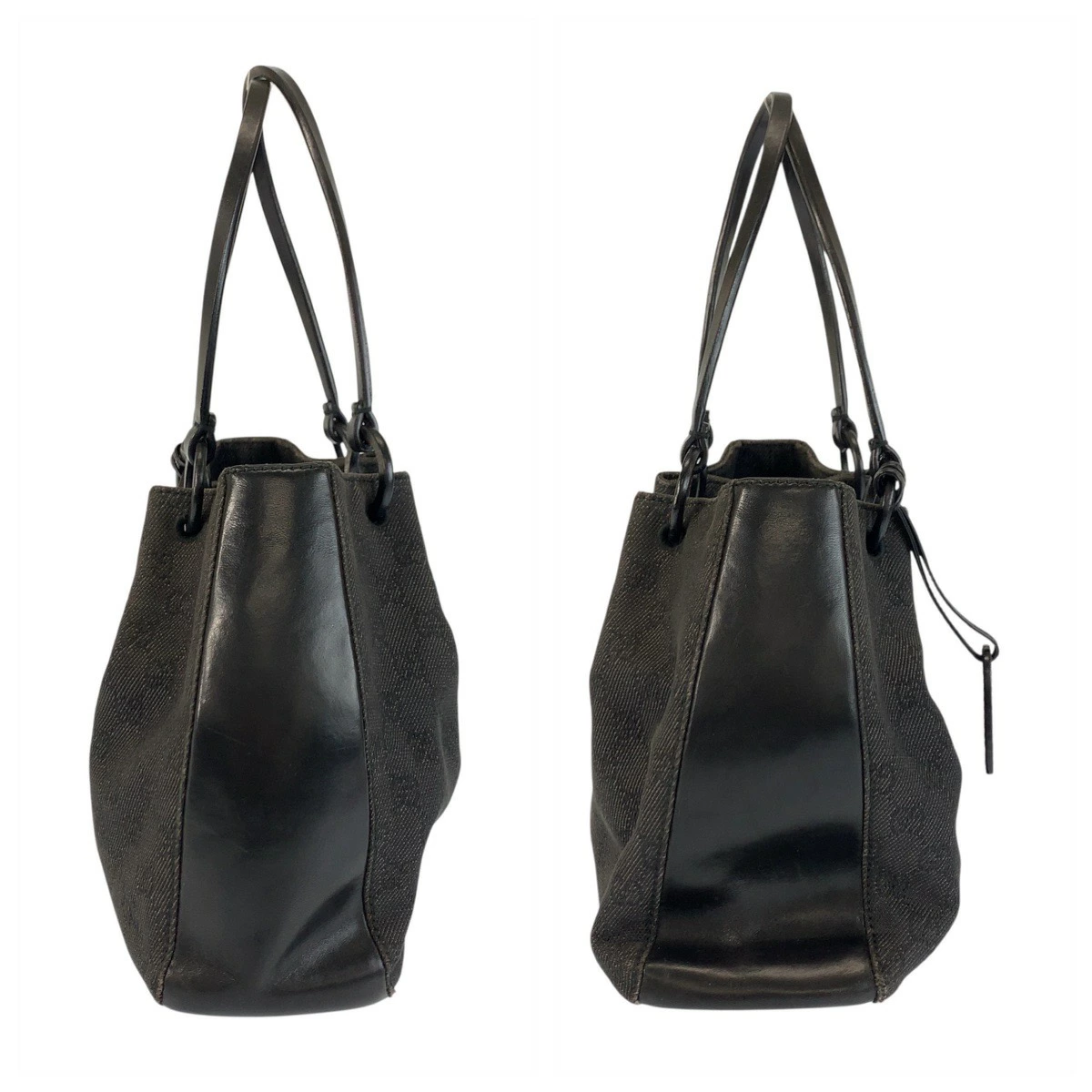 GUCCI 10919 Black GG Canvas/Leather Tote Bag with Silver Hardware, Women's Shoulder Bag, 600710 (Pre-owned)
