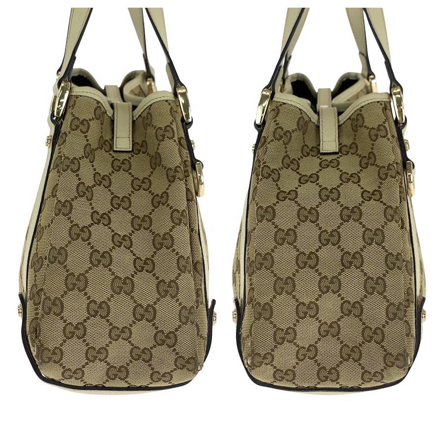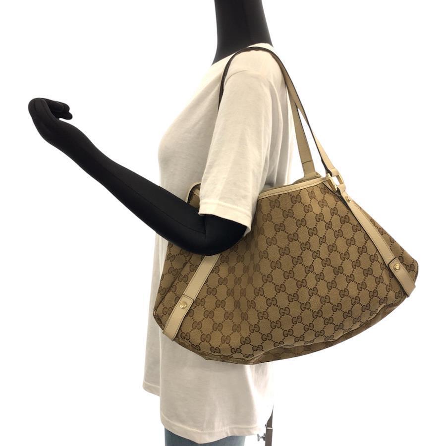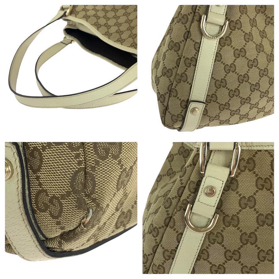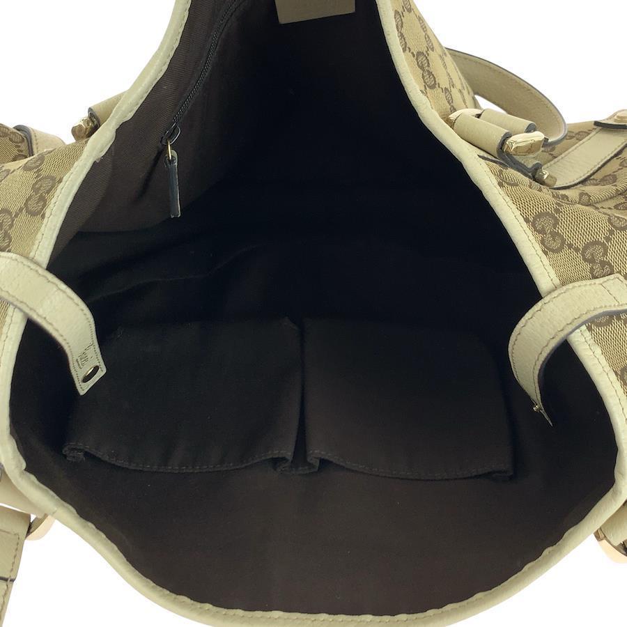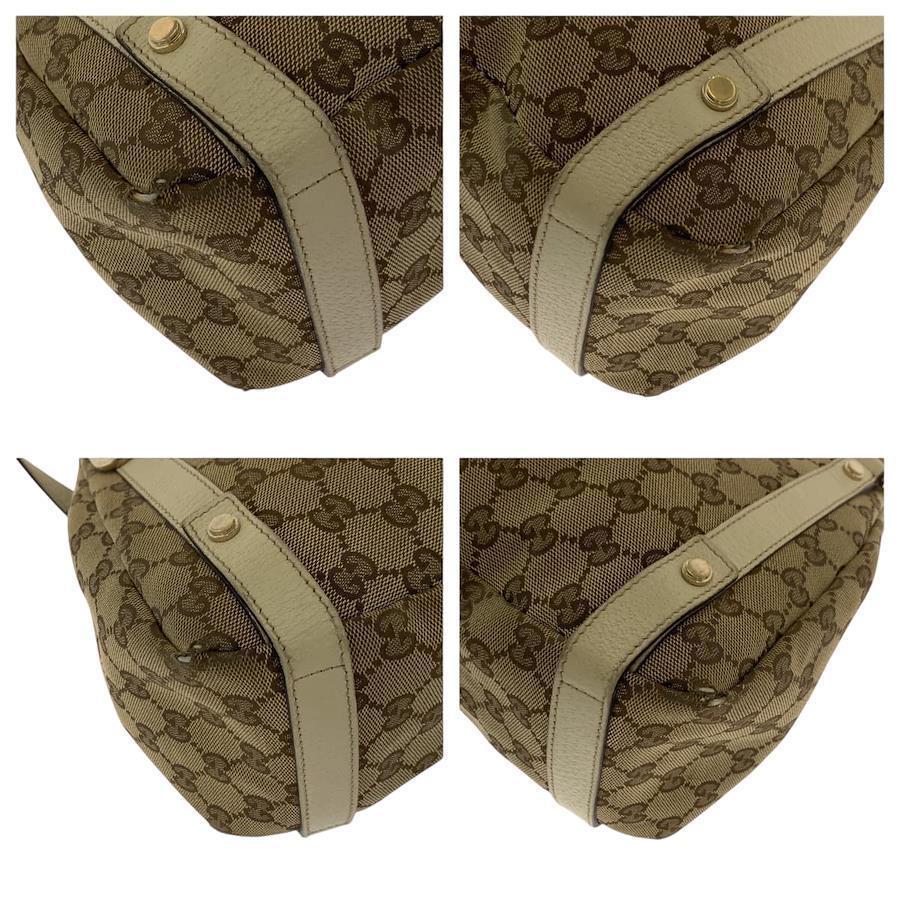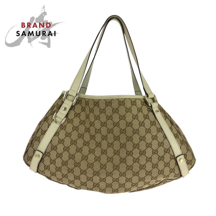 ■商品情報[ブランド]グッチ(GUCCI)[型番]130736[対象]レディース[カラー]ベージュ ホワイト ゴールド金具[生産国]イタリア[サイズ]W約42.5cm x H約25cm x D約10cmハンドル:約47.5cm[素材]GGキャンバス[仕様]開閉式:スナップボタン内側:ファスナーポケット x 1、オープンポケット x 2[付属品]なし■状態・コンディション[状態ランク]薄汚れ、擦れ、小傷などはありますが、まだまだ使用できる商品です