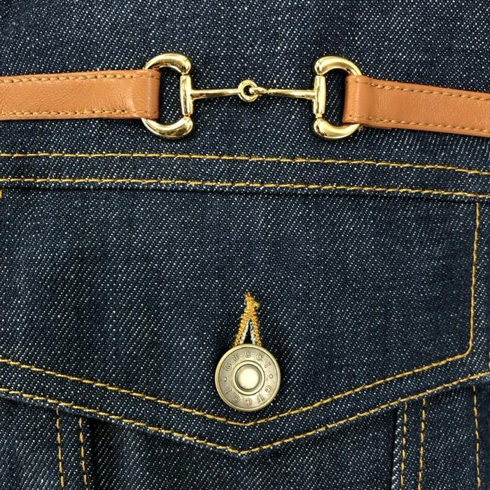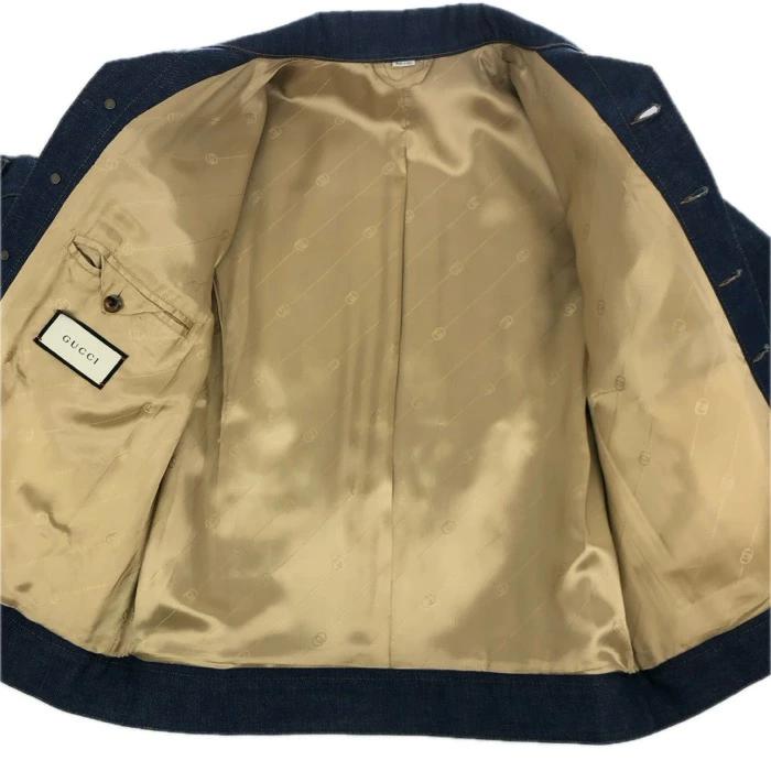 | 商品説明 | 【管理番号】 015653w 【ブランド名】グッチ 【商品名】 【アイテム】ホースビット デニム Gジャン ジャケット ブルゾン サイズ44 S相当 【型番】 【サイズ】 44(170/84A)(S相当) 平置採寸(肩幅:約47cm・身幅:約52cm・袖丈:約63.5cm・着丈:約64.5cm) 【色・柄】 インディゴブルー 【素材】 表地:コットン100% 裏地:レーヨン100% 皮革部分:羊革 【付属品】 ハンガー 【外観ランク】 Sランク 【商品補足説明】季節:春秋 ポケットあり。 |