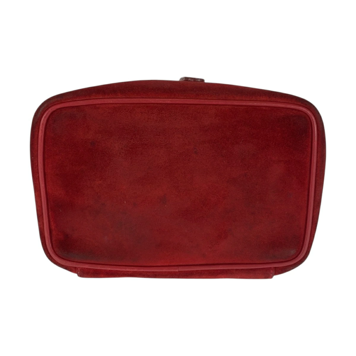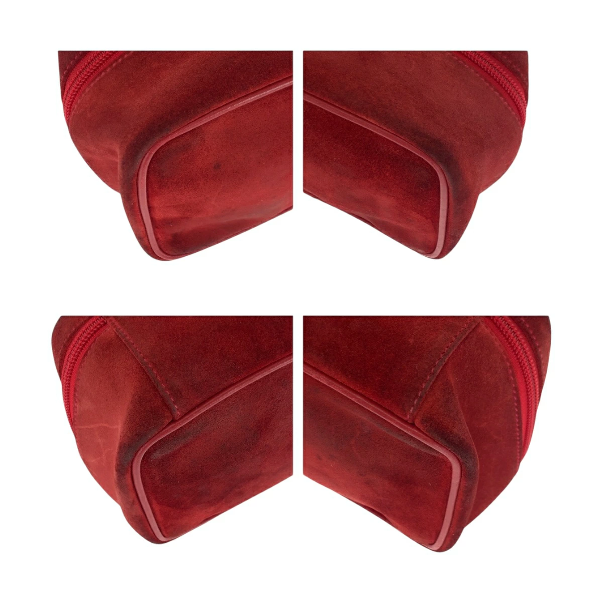 Pre-owned GUCCI Horsebit Red Suede Handbag Vanity Bag 032 1705 0141 (505093) with Gold Hardware.