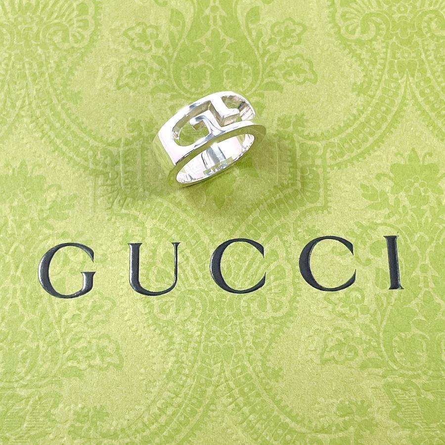 Pre-owned GUCCI ring with double G logo, silver 925, size 7782, unisex.