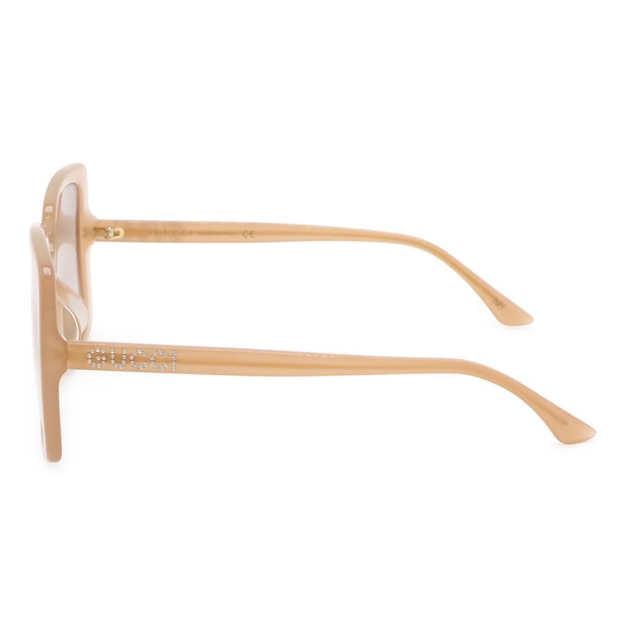 スクエアのシルエットが特徴的で、テンプルにラインストーンのロゴが入ったお洒落なサングラスでございます。
