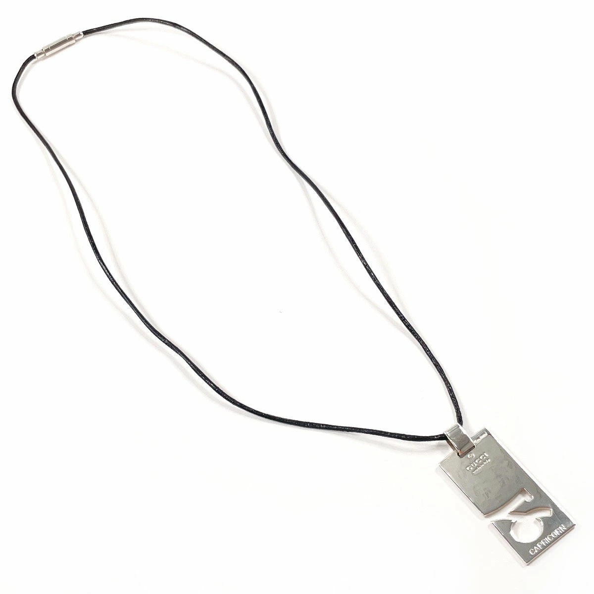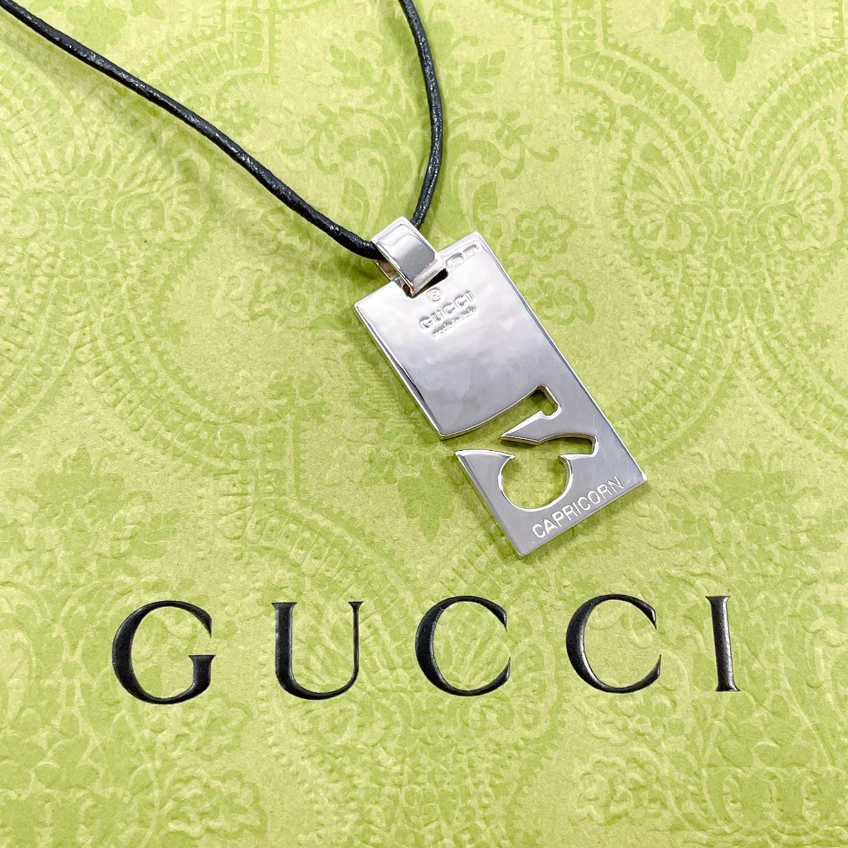 | 商品説明 | GUCCIの星座モチーフ「CAPRICORN(やぎ座)」をデザインした、洗練されたネックレス。 シャープなプレートに刻まれた星座が知性と個性を演出します。※紐は正規品ではございません。 |