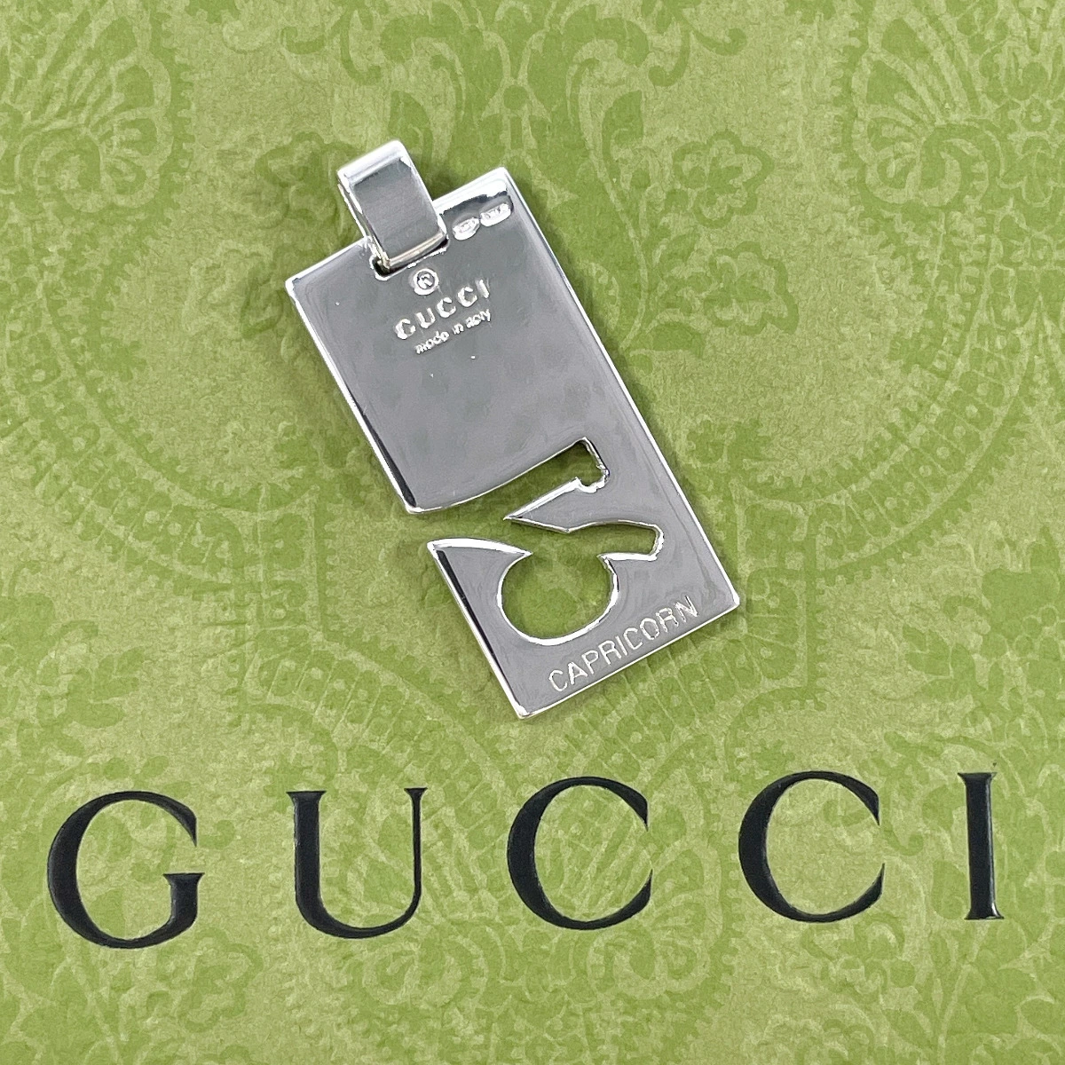 | 商品説明 | GUCCI【グッチ】の星座モチーフ『やぎ座』プレート型ペンダントトップです。お持ちのチェーンを通してお使いください。 |