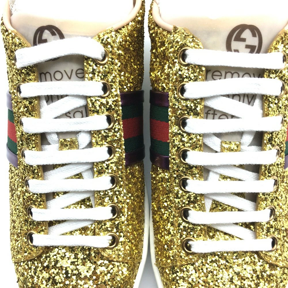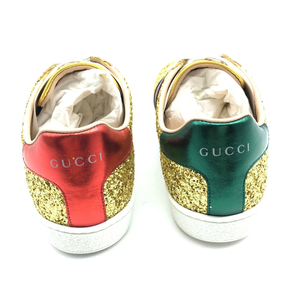 | 商品説明 | 〔エース〕スニーカーはデビュー以来、グッチのコレクションに欠かせないアイテムとなっています。サイドにウェブストライプをあしらったレトロなデザインは、1970年代に登場したグッチのスニーカーからインスピレーションを得たもの。メタリックゴールドで印象的に仕上げました。 |