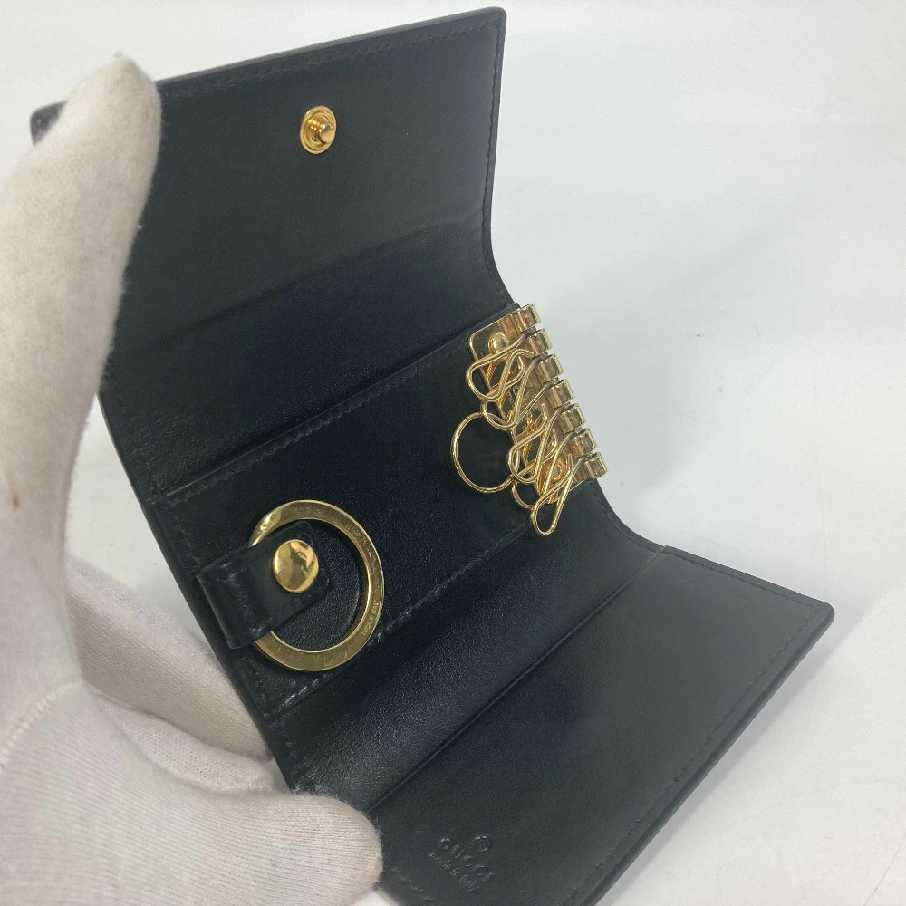 GUCCI 547588 Logo 6-Key Leather Key Case, Women's, Black [Pre-owned]