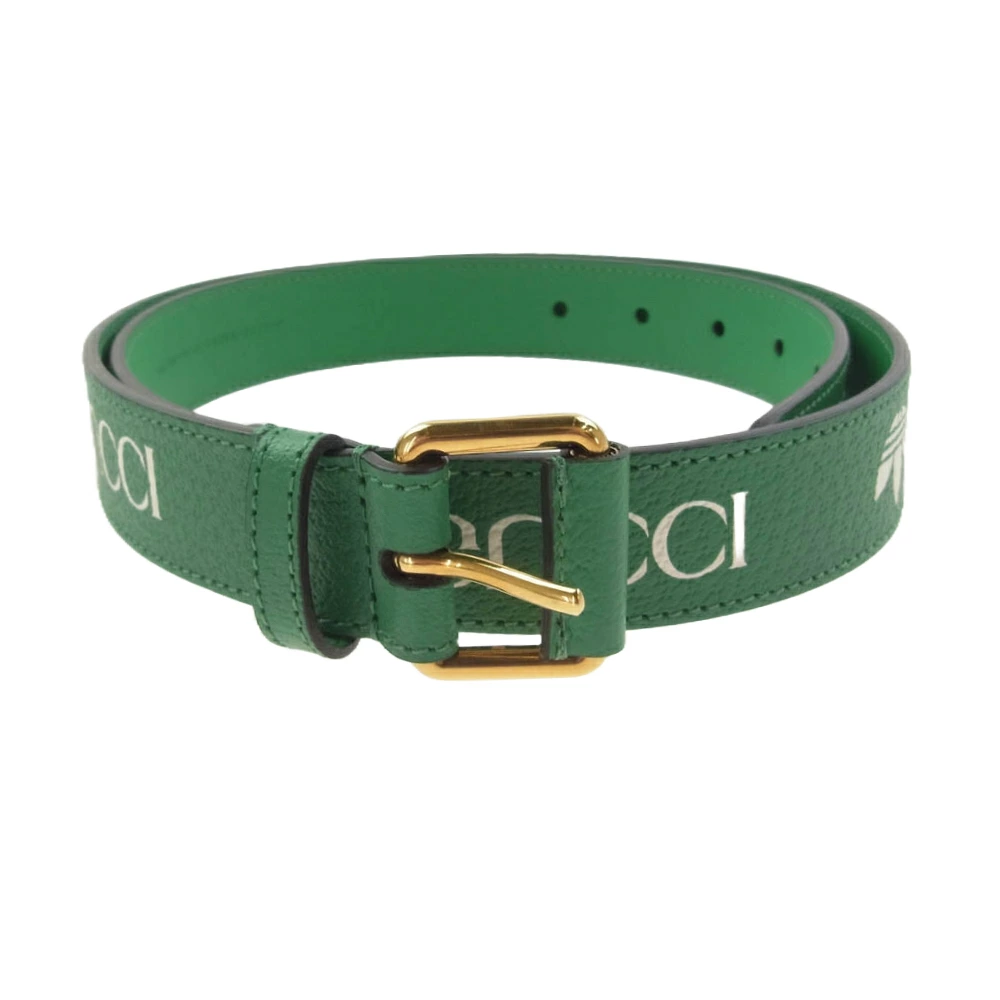 GUCCI 702277 U4DBT 3739 ADIDAS logo print buckle leather belt with gold hardware, 90cm, green. [Like new] [Unused] Men's [Pre-owned]