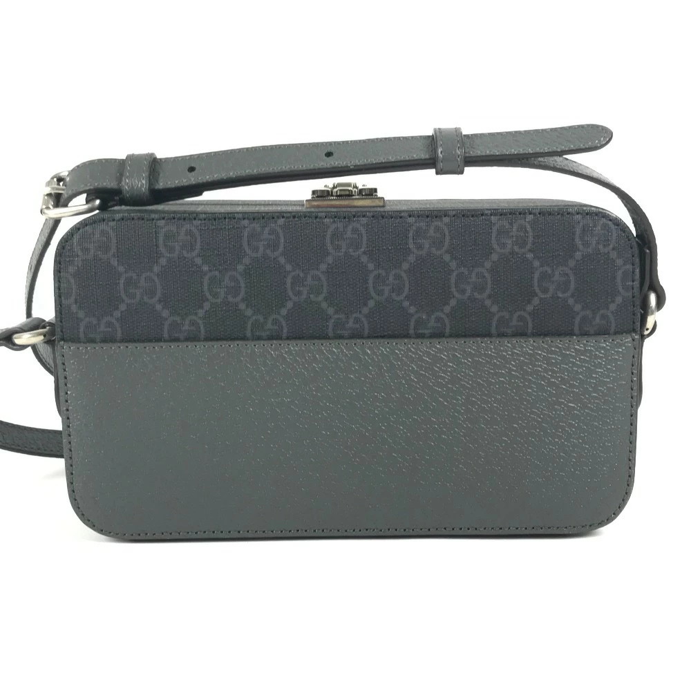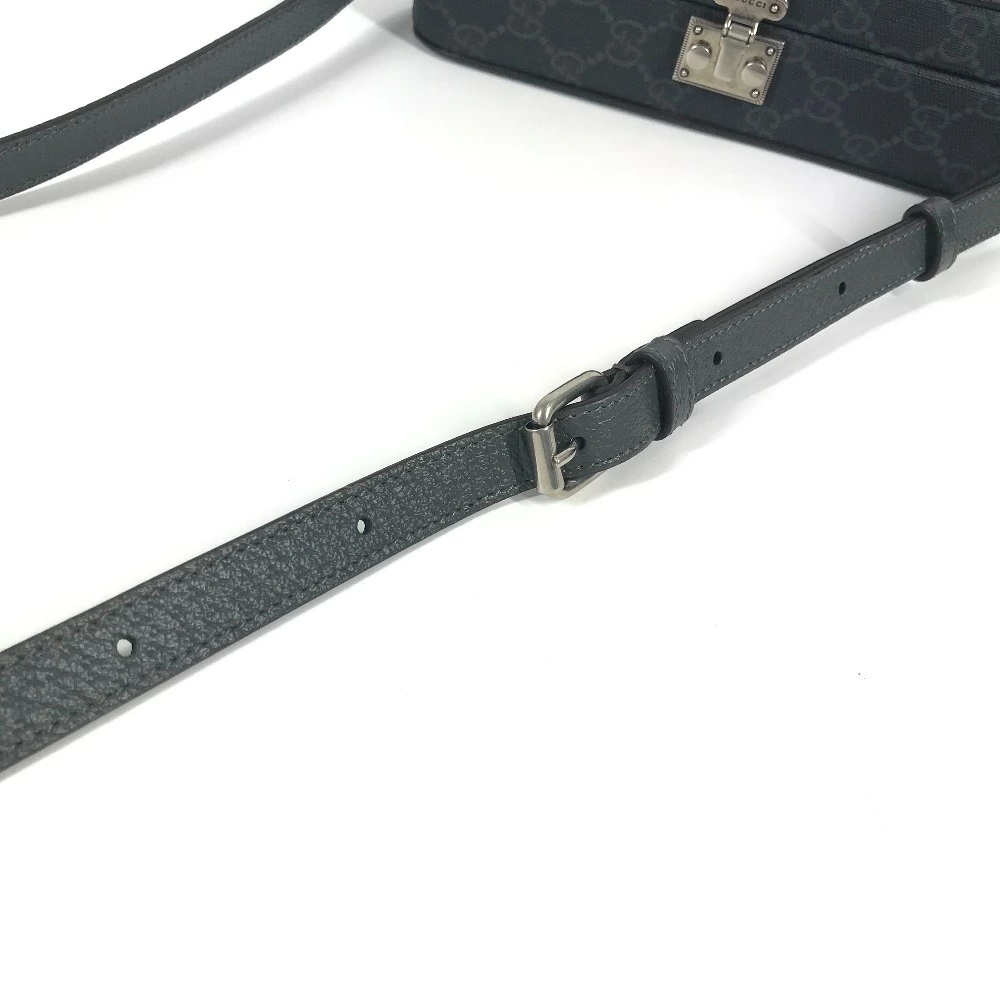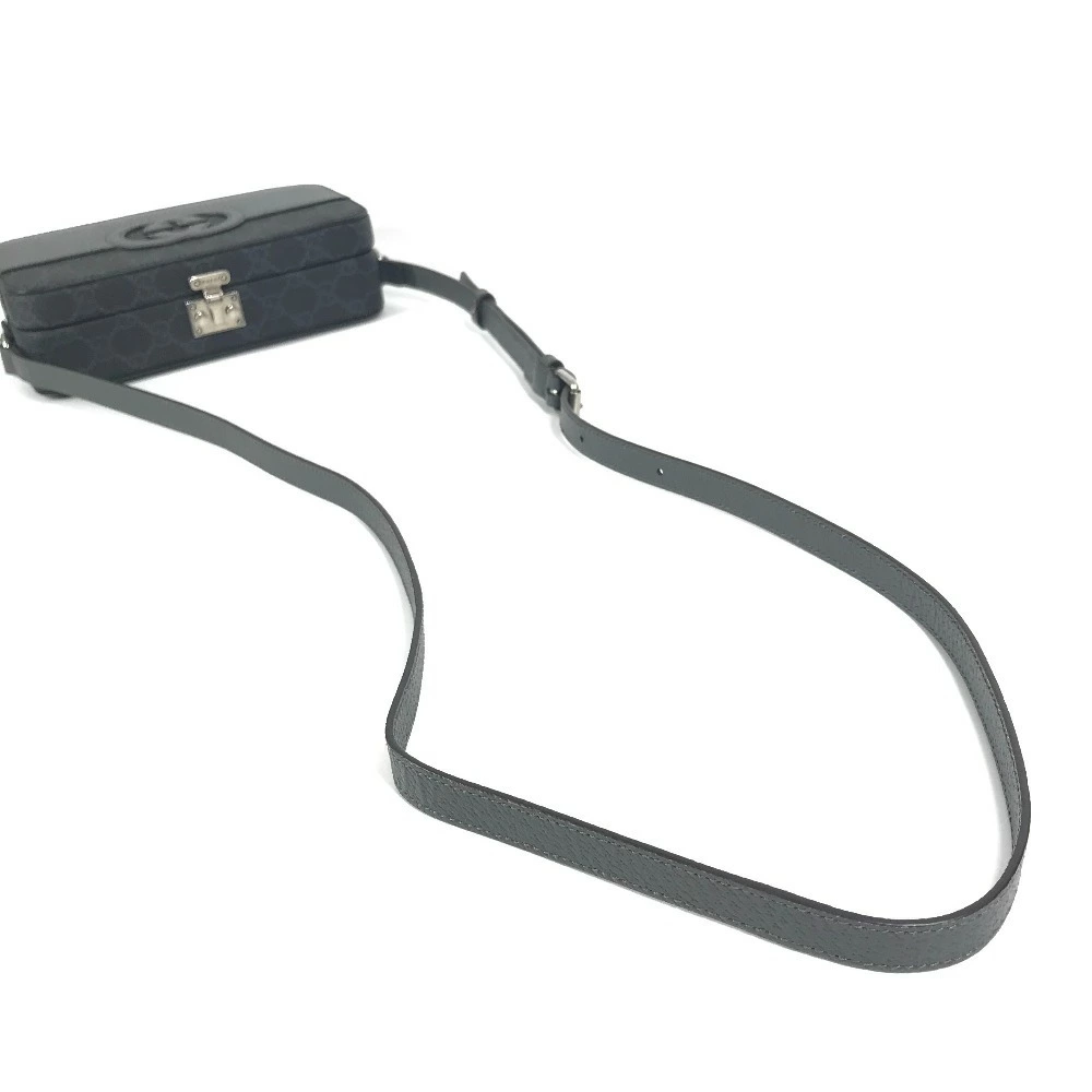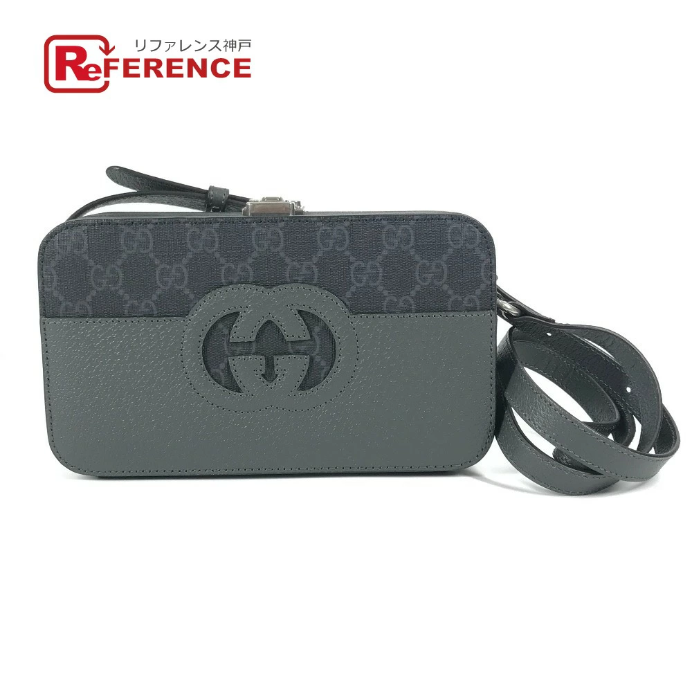 GUCCI 725341 GG Supreme Cutout Interlocking G Crossbody Pochette Shoulder Bag in GG Supreme Canvas/Leather, Unisex, Gray, Unused [Pre-owned]