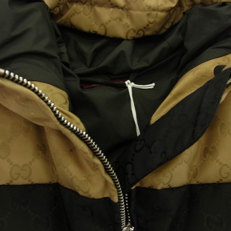 ベージュ系 x ブラック系【モデル】GGナイロンキャンバス 中綿 パファー ジャケット