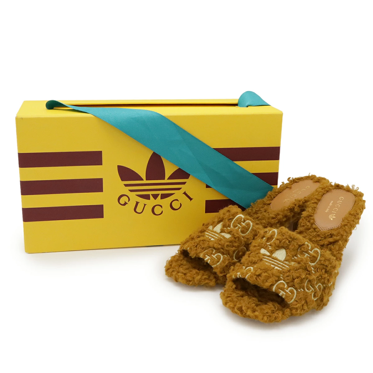 モコモコのボアにGGパターンとアディダスのアイコンが刺繍で入ったとてもお洒落な逸品です。