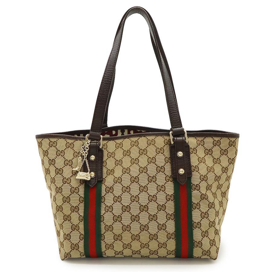 人気のGG柄にチャームのアクセントが効いたおしゃれなトートバッグ。