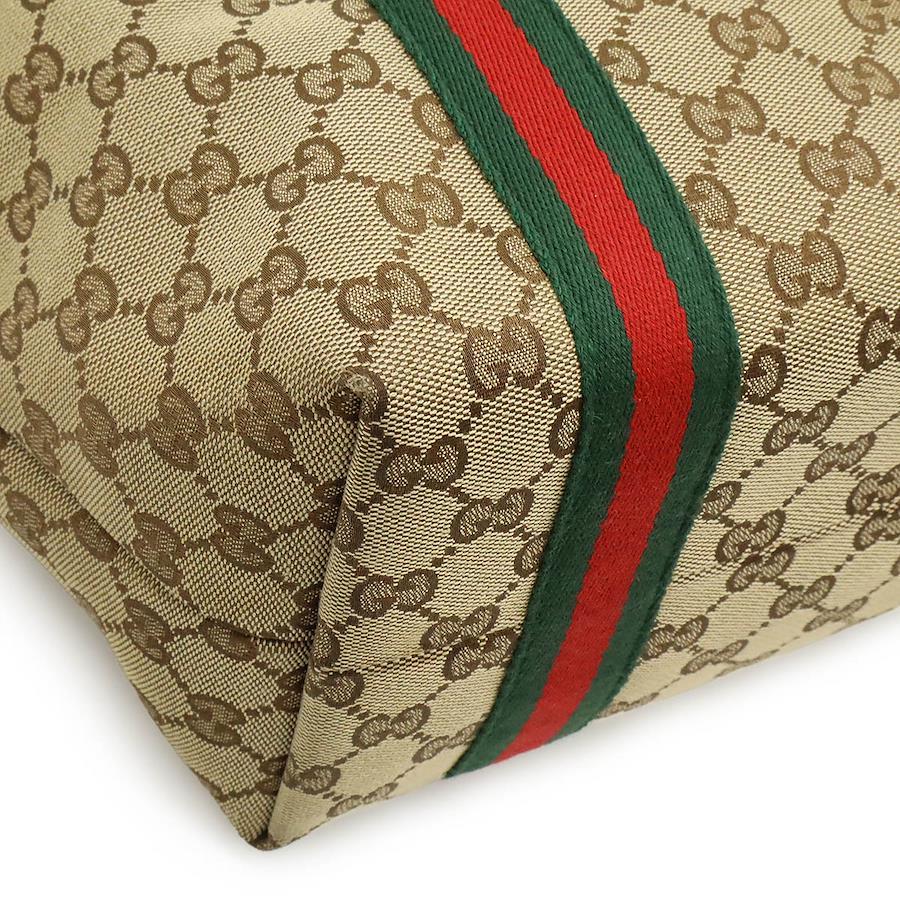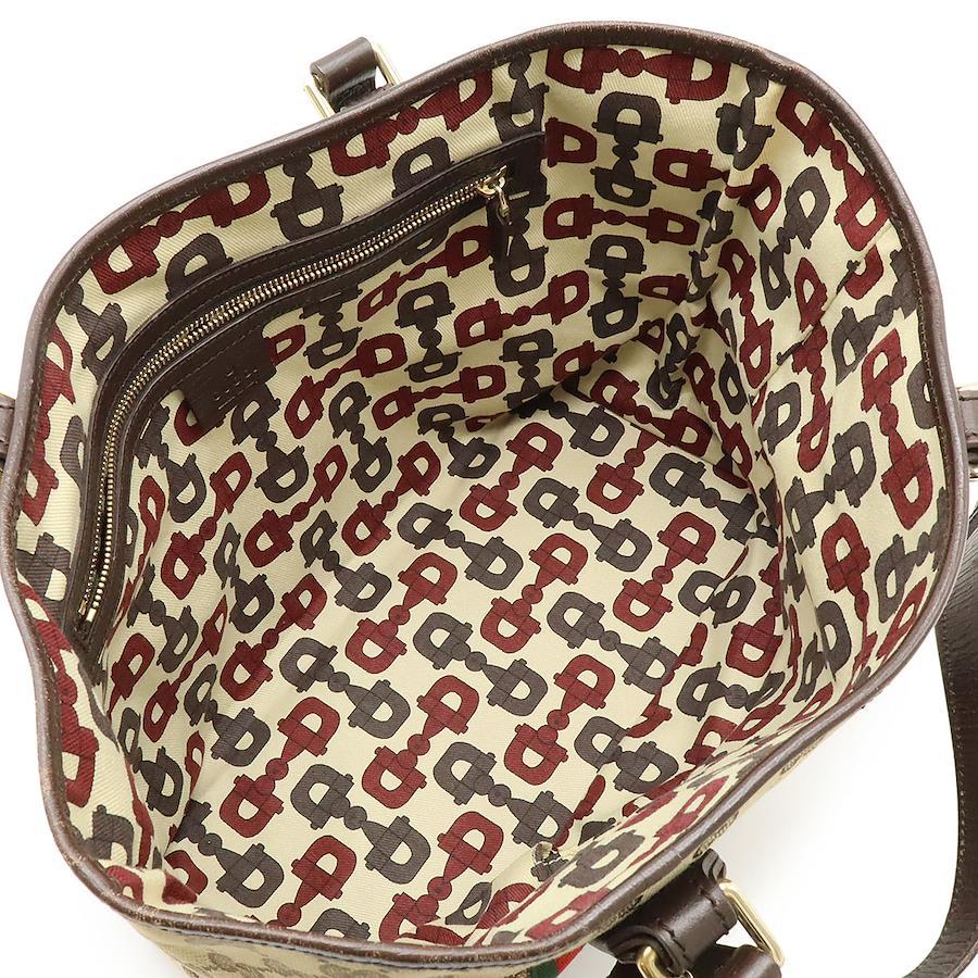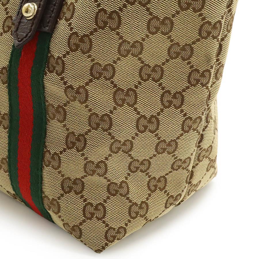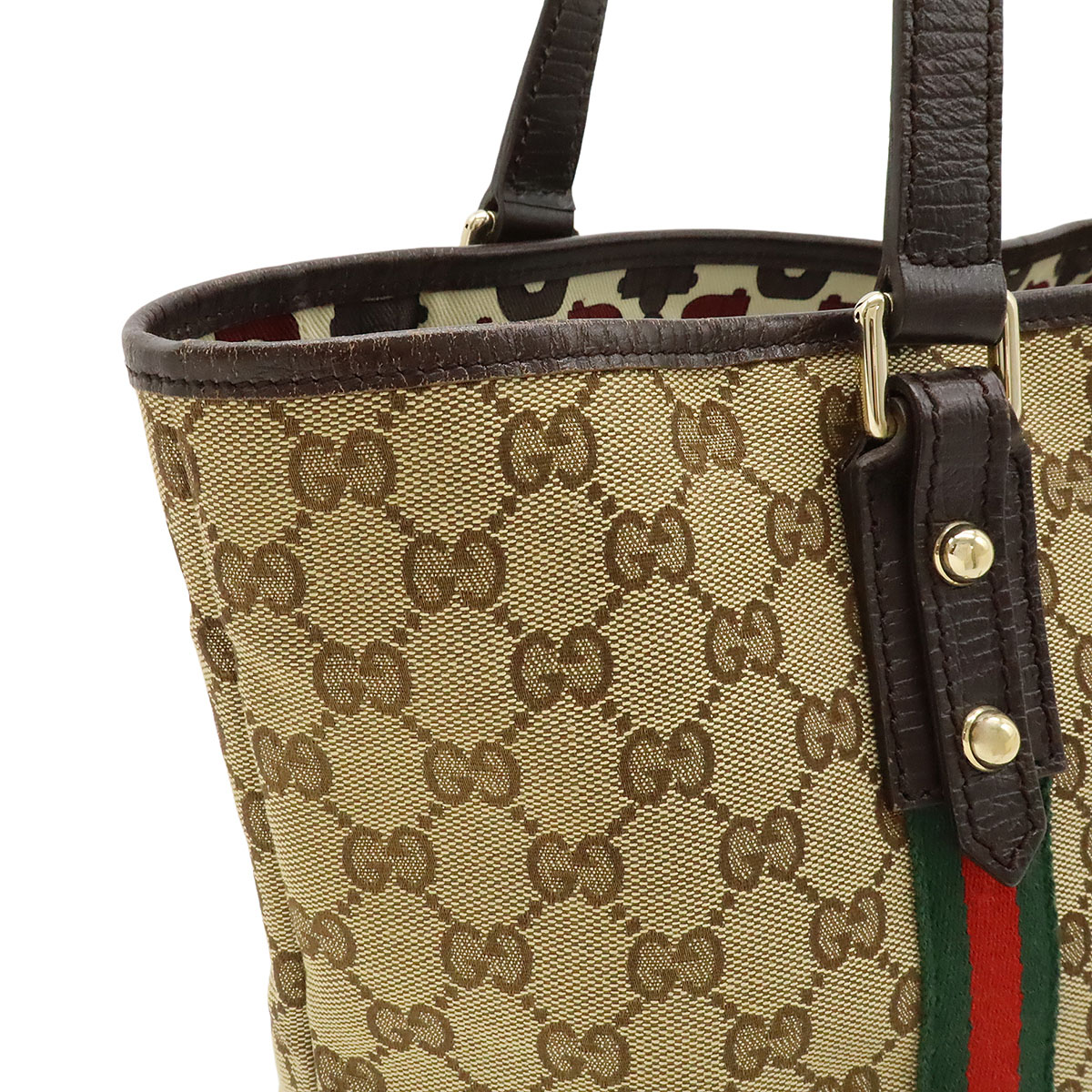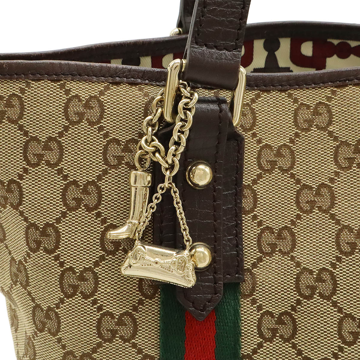 GUCCI GG Canvas Sherry Line Tote Bag Shoulder Bag in Beige and Dark Brown Leather with Charm (137396)