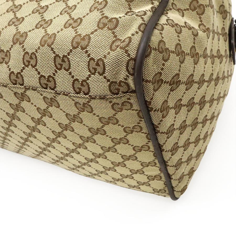 キャンバス地にレザーのアクセントが効いた、クラシカルな印象のボストンバッグ。