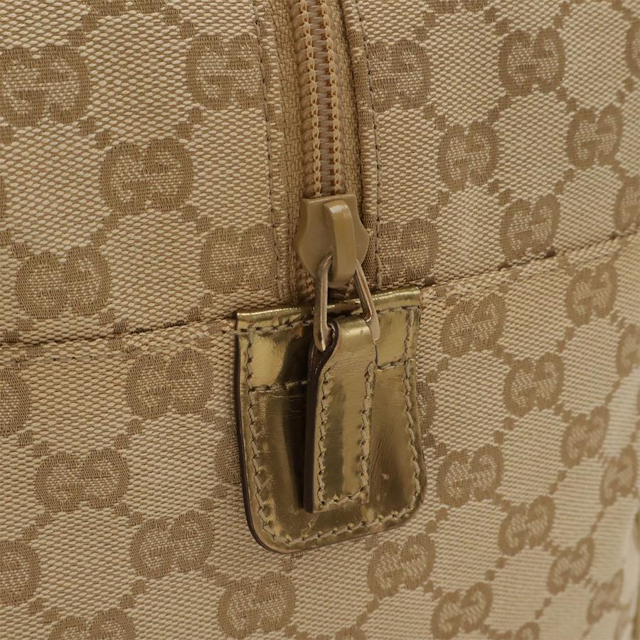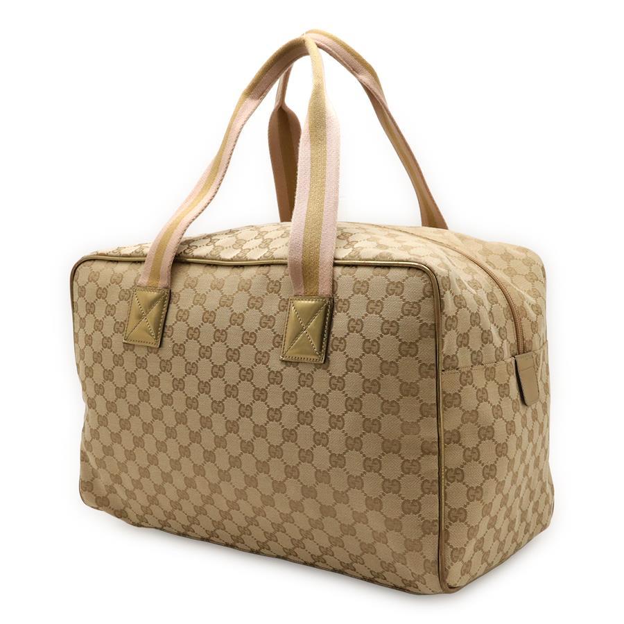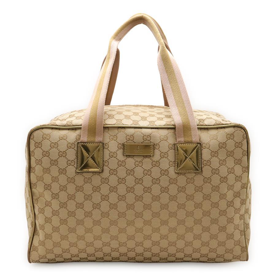 GUCCI GG Canvas Sherry Line Boston Bag Shoulder Bag Travel Cover Metallic Leather Beige Pink Gold 153240
