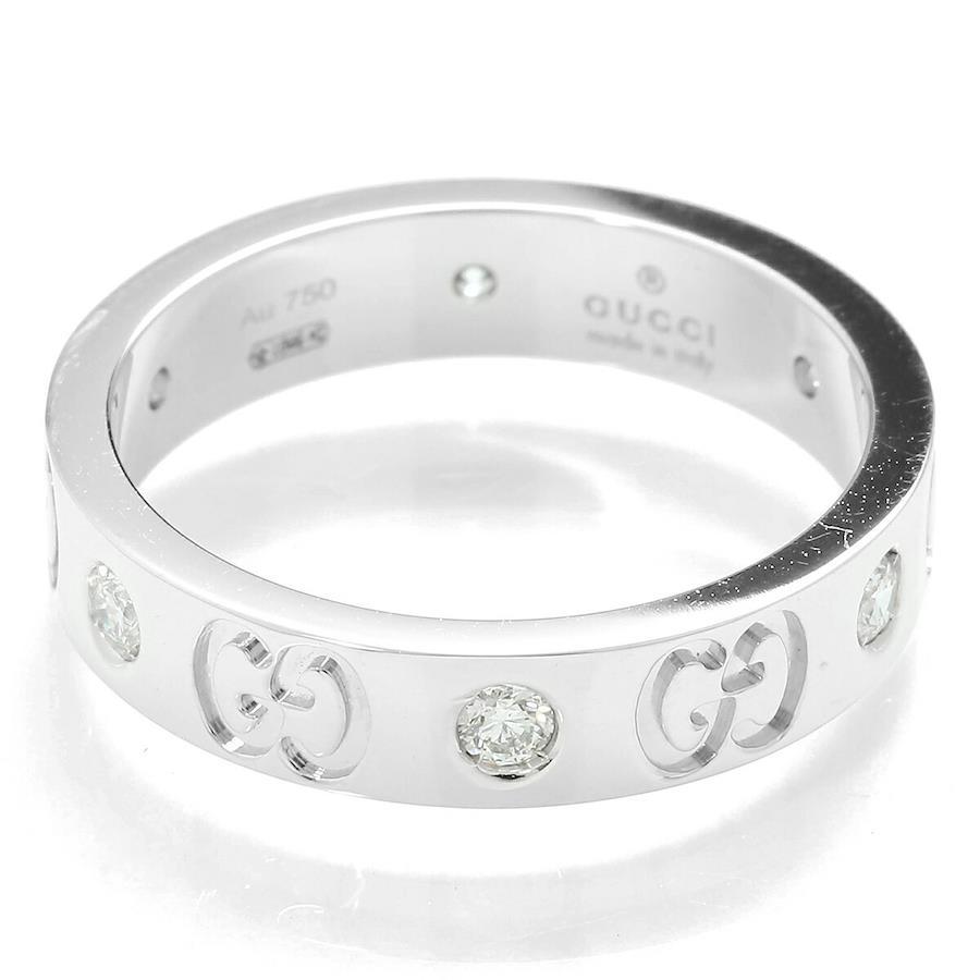 Gucci GG Icon Ring, Diamond, 18K White Gold, Size 10.5, Pre-owned
