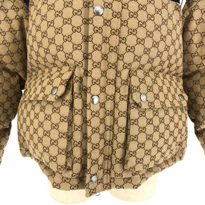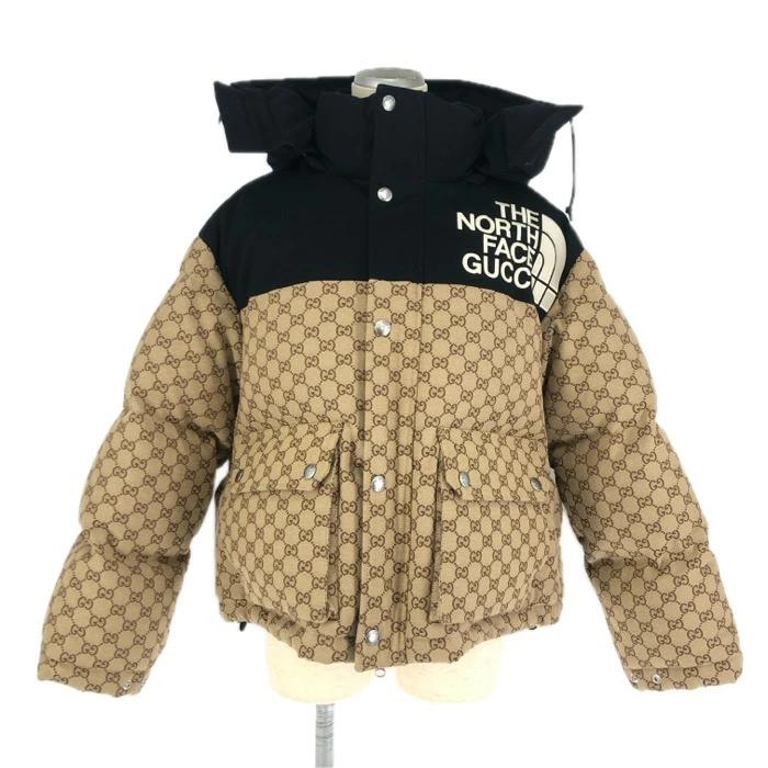 GUCCI THE NORTH FACE GG Padded Short Jacket, a women's zip-up down jacket (size 7 equivalent), made of cotton in beige and black (product number 670908 Z8APZ). Pre-owned.