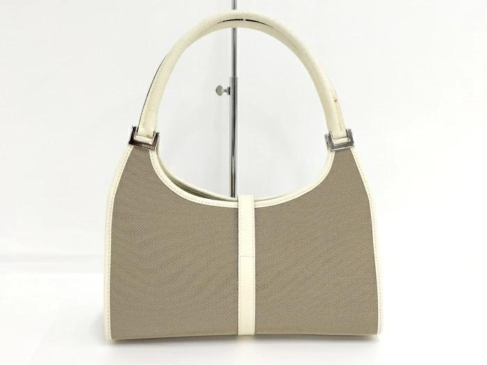 [商品情報]・カラー:アイボリー ブラウン・素材/ライン:レザー キャンバス・サイズ:最大約 W26×H14×D9(cm)・ショルダーの長さ:最大約33(cm)※多少の誤差はご了承下さい。