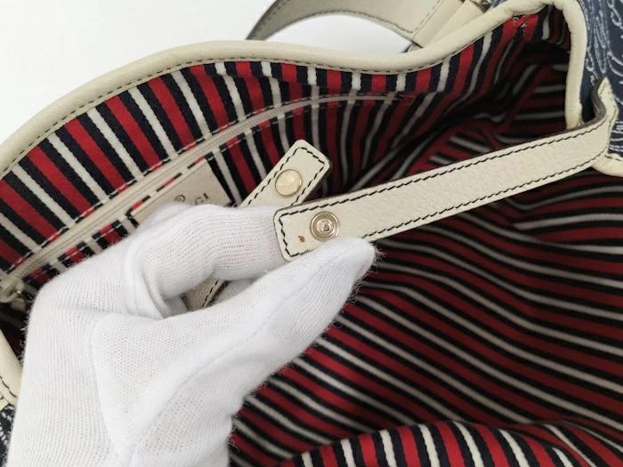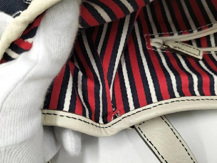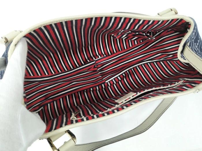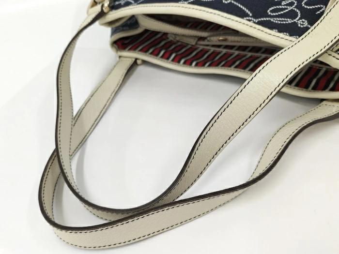 [商品情報]・カラー:ネイビー・素材/ライン:キャンバスレザー・サイズ:最大約 W上25下40×H20×D9(cm)・ショルダーの長さ:最大約47(cm)※多少の誤差はご了承下さい。