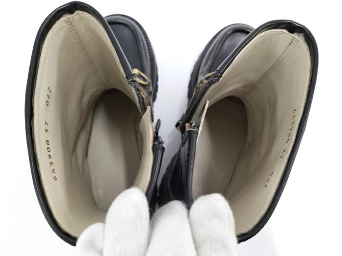 [商品情報]・カラー:ブラック・素材/ライン:レザー・ヒール高 サイズ:約 4.5(cm)・筒周り サイズ:約 28(cm)・ブーツ高 サイズ:約 18(cm)・表記サイズ:37