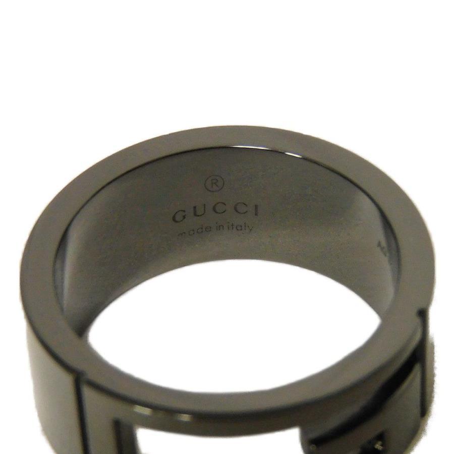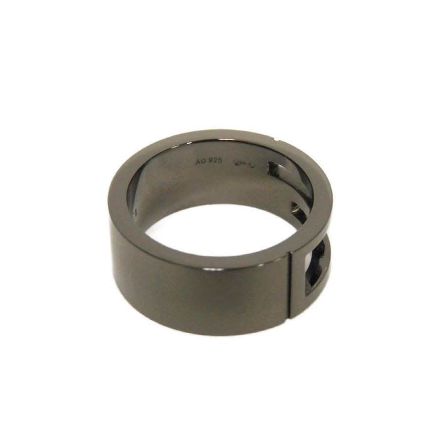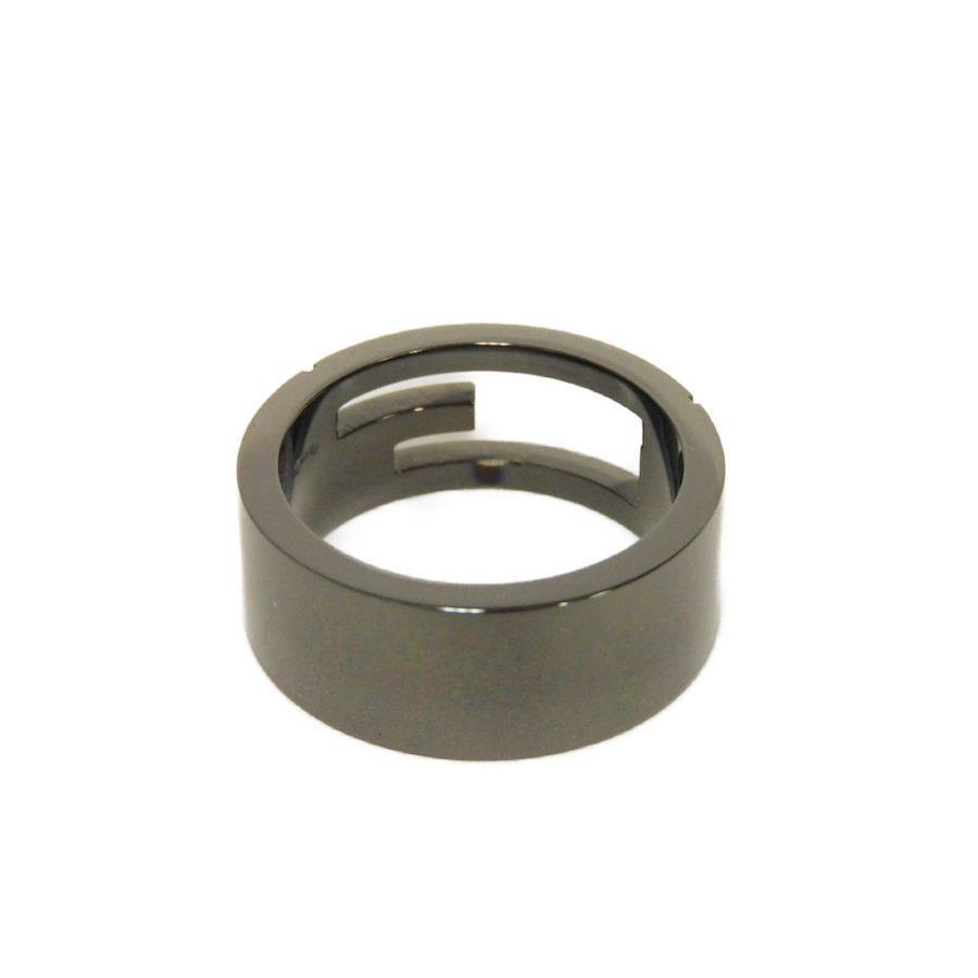 スターリングシルバーにルテニウムコーティングが施され、グッチのGロゴが型抜きした「ブランテッド カットアウト G リング」指輪です。