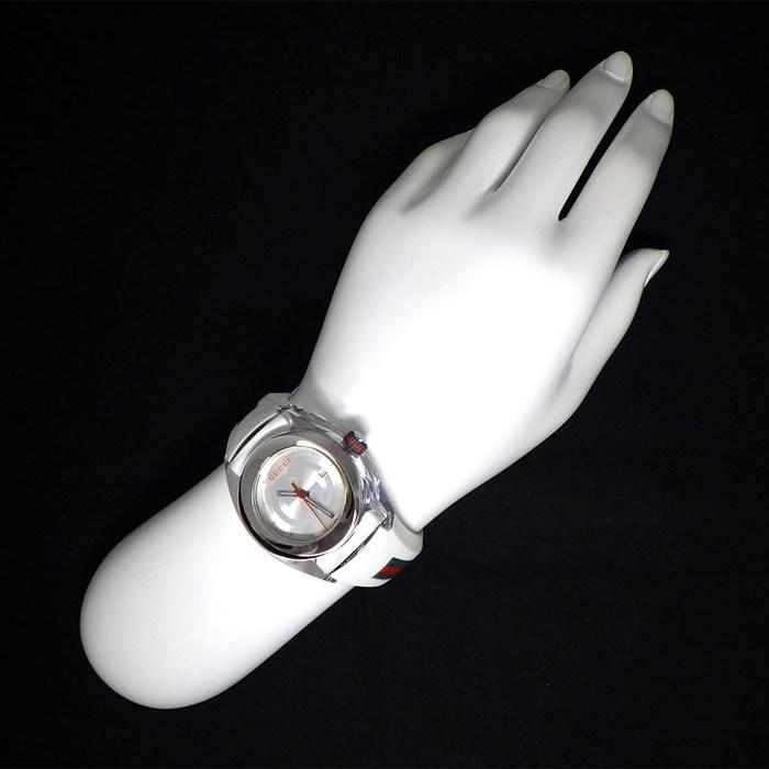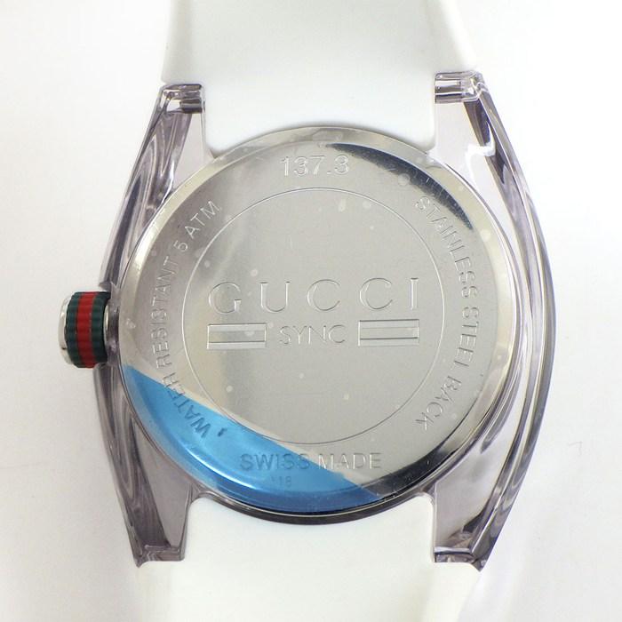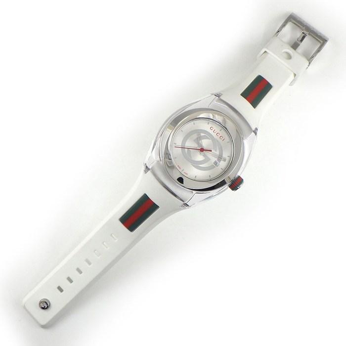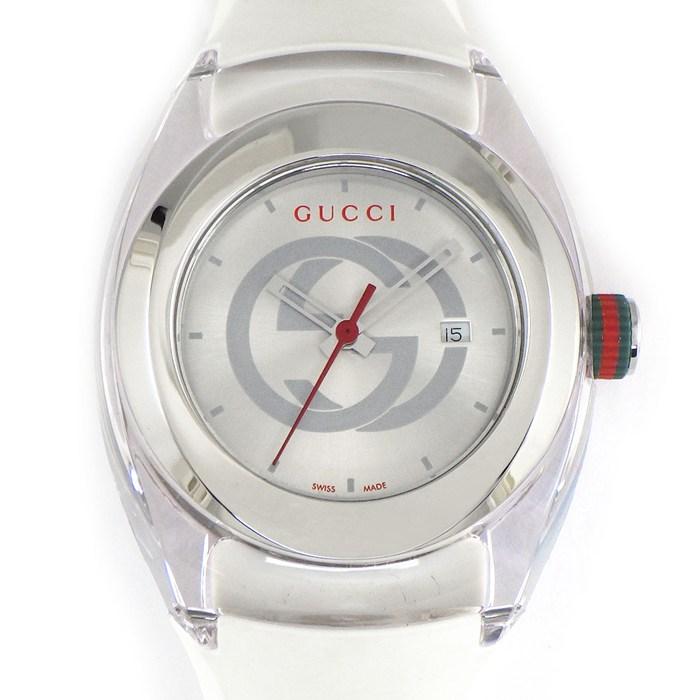 ■商品名GUCCI 腕時計 シンク 137.3/YA137303 インターロッキング G サンレイ シルバー文字盤 デイト ホワイト ラバー SS クオーツアナログ 【中古】