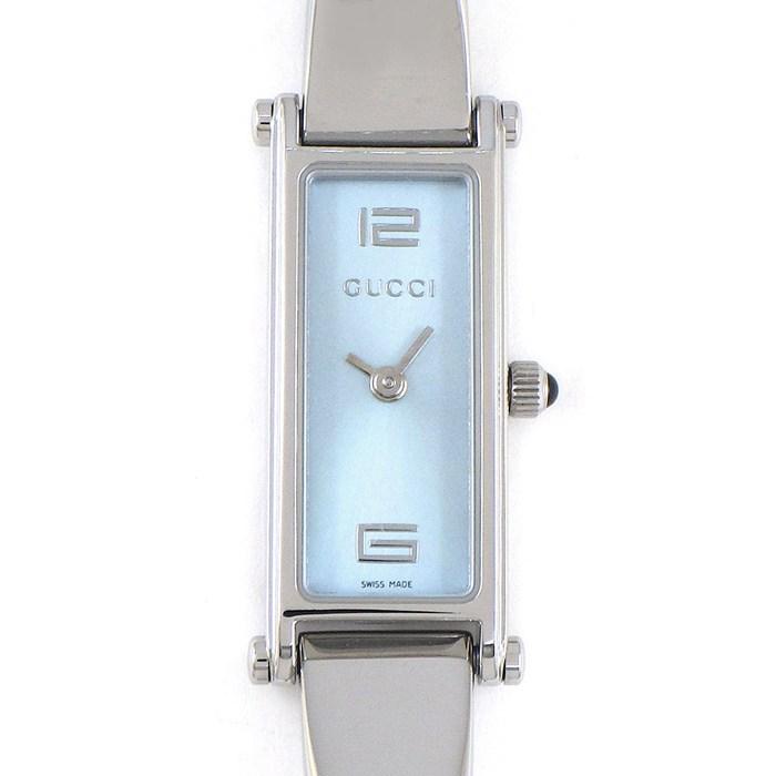 GUCCI 腕時計 バングルウォッチ 1500L レクタンギュラー サンレイ ライトブルー文字盤 SS クオーツアナログ 【中古】