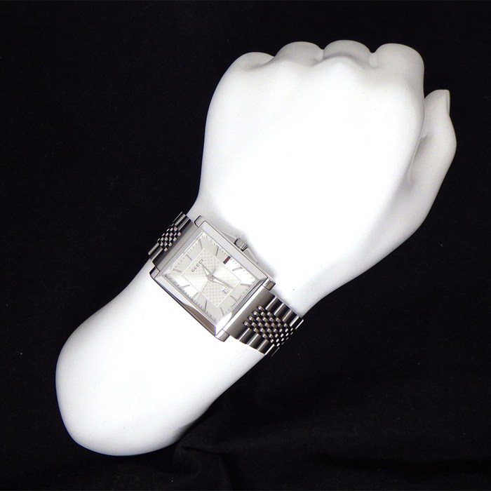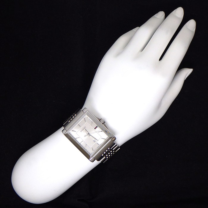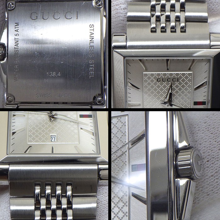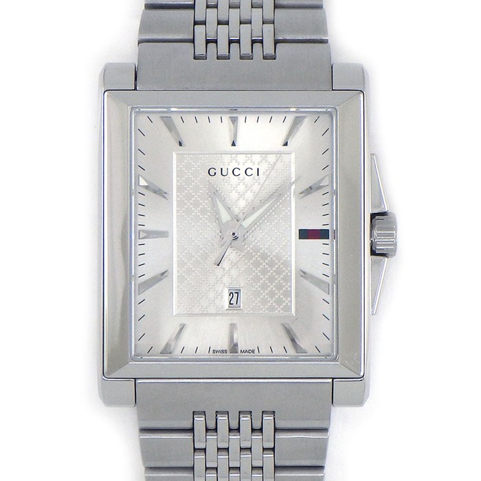 ■商品名GUCCI 腕時計 Gタイムレス レクタングル 138.4 レクタンギュラー サンレイ シルバー文字盤 デイト SS クオーツアナログ 【中古】