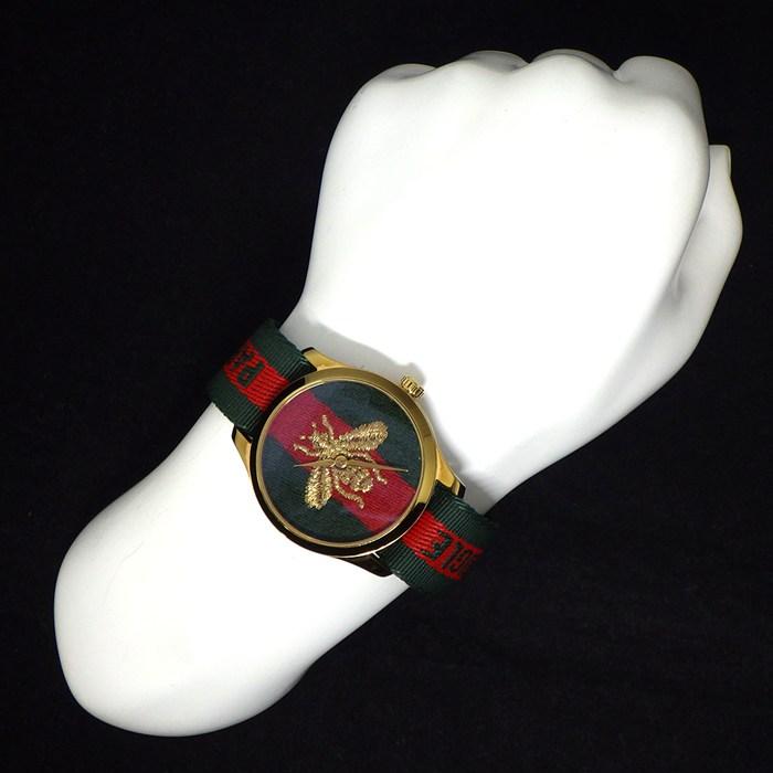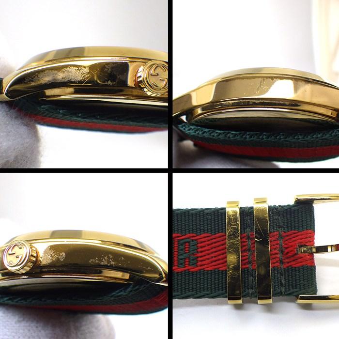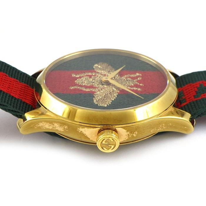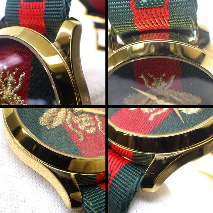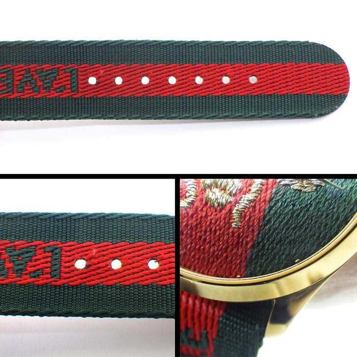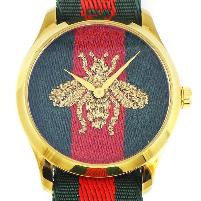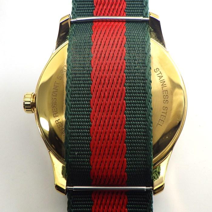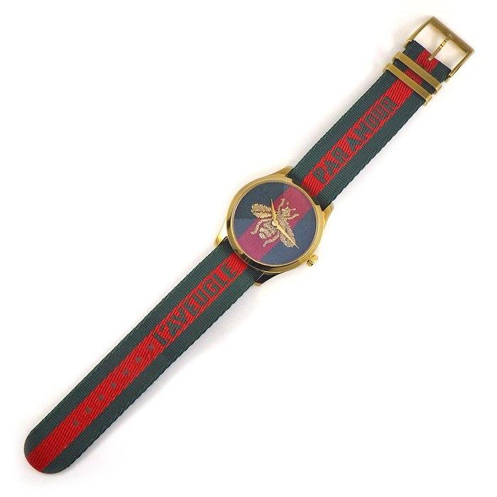 ■商品名GUCCI 腕時計 Gタイムレス 126.4 グリーン/レッド/ビー文字盤 シェリーライン マルチカラー ナイロンベルト GP SS クオーツアナログ 【中古】