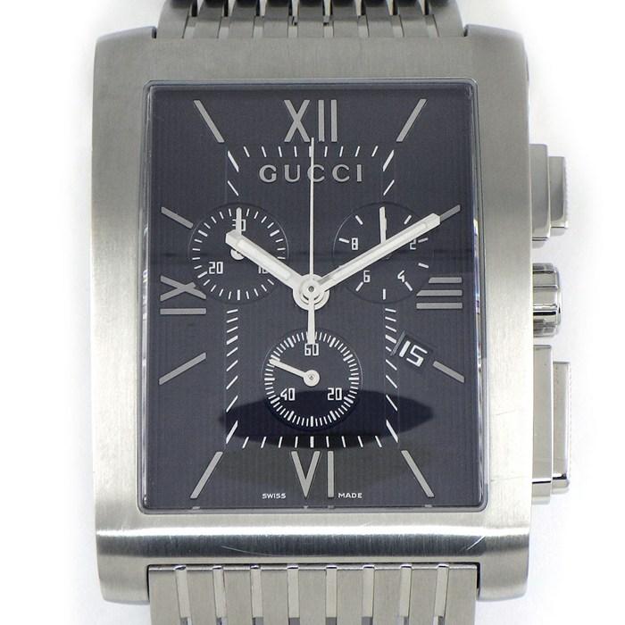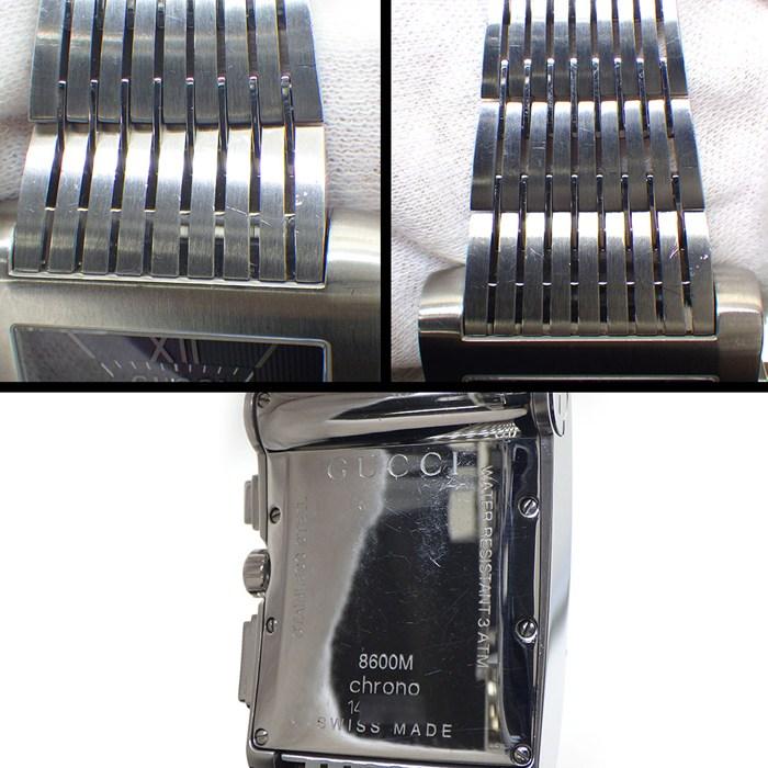 ■商品名GUCCI 腕時計 Gメトロ 8600M レクタンギュラー ブラック文字盤 デイト クロノグラフ スモールセコンド 夜光針・インデックス SS クオーツアナログ 【中古】