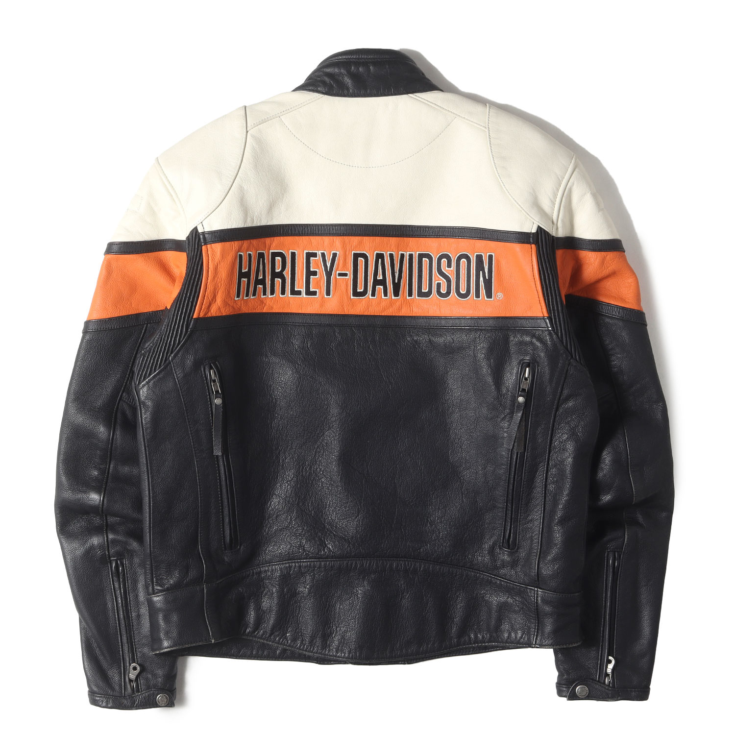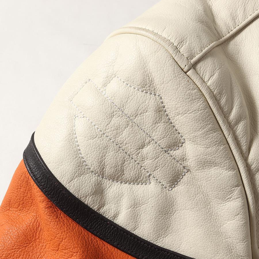| 商品説明 | ・表地 カウレザー ・裏地 メッシュ生地 ・3トーンカラー ・別売りのショルダー&エルボーパッド装着可能 ・背面ベンチレーションジップ付き ・著名人着用モデル |